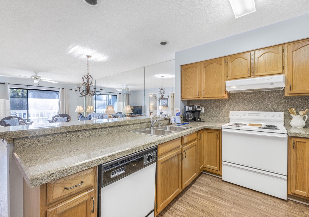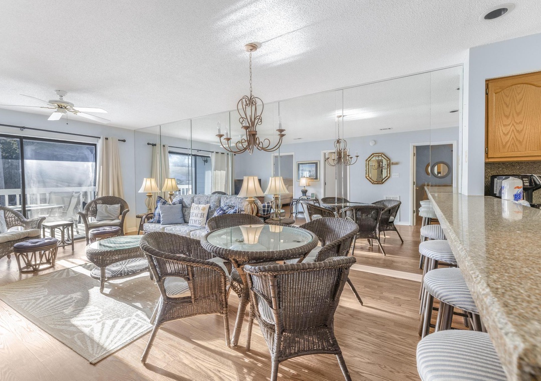 Kitchen and Dining: The fully stocked kitchen has everything you need to prepare meals, whether it’s a quick breakfast or a fresh catch from the bay. Enjoy casual meals at the bar seating for four or gather around the dining table, which also seats four.