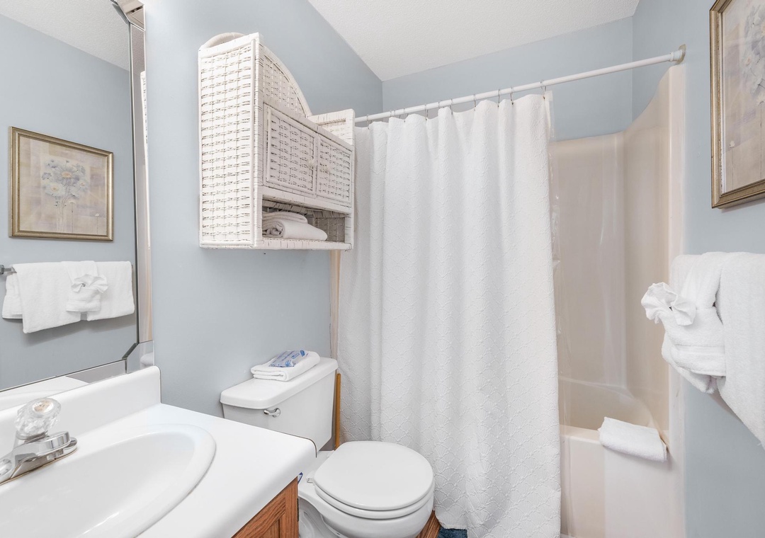 Bedrooms: The spacious master bedroom features a cozy queen bed and an en-suite bathroom with a tub/shower combo. The second bedroom offers a comfortable full-size bed, perfect for family or friends.