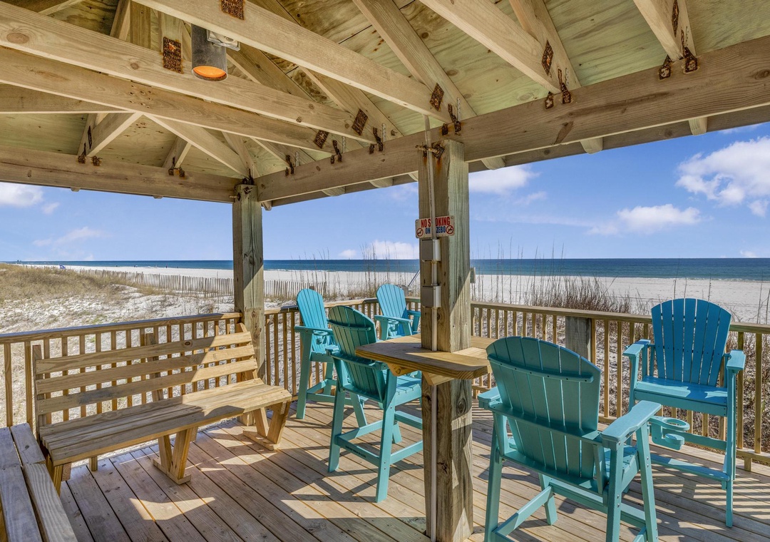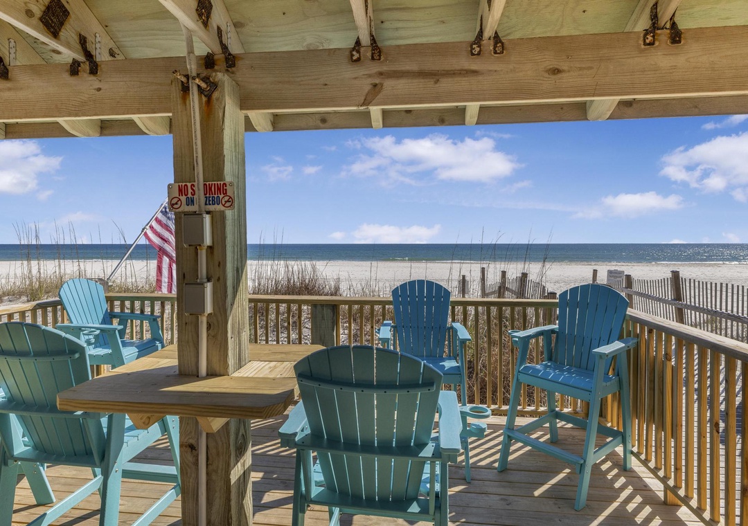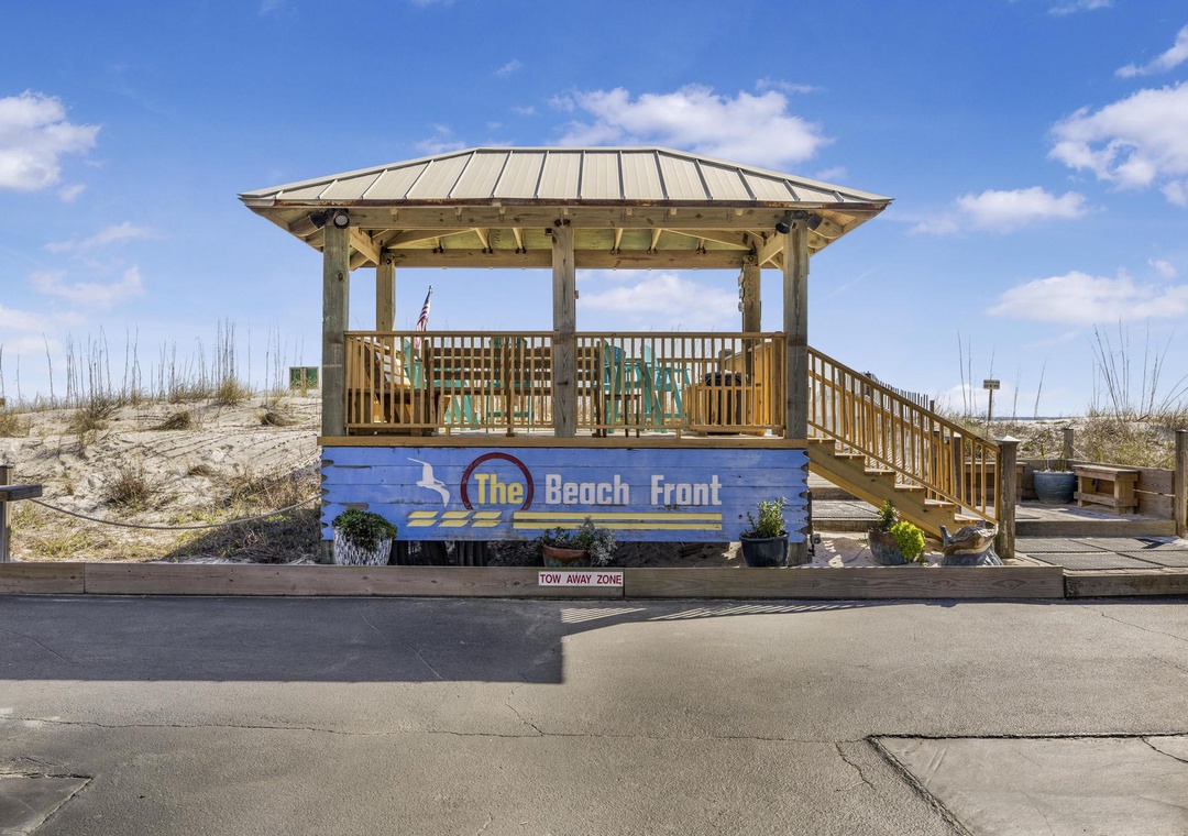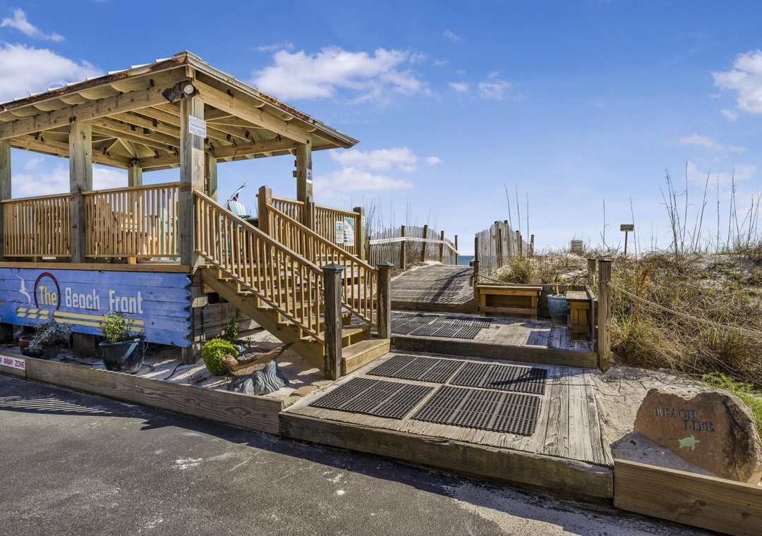 Located within The Beach Front complex, this Gulf-front property is a serene getaway perfect for families, couples, or small groups. Each of the 36 individually owned condos reflects a unique style, providing a cozy and personal touch to your stay. Just steps from the pristine white sands and crystal-clear waters of the Alabama Gulf Coast, the property also features a beachfront gazebo, offering a shaded spot to enjoy the breathtaking sunrise and sunset views over the ocean.