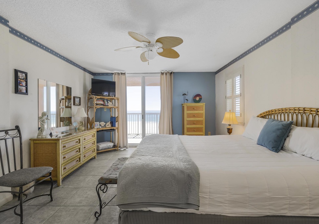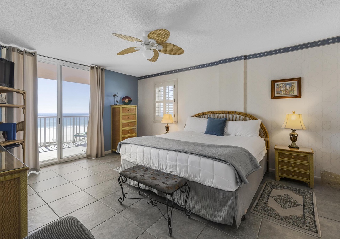 Bedroom 1: King Bed with Balcony Access