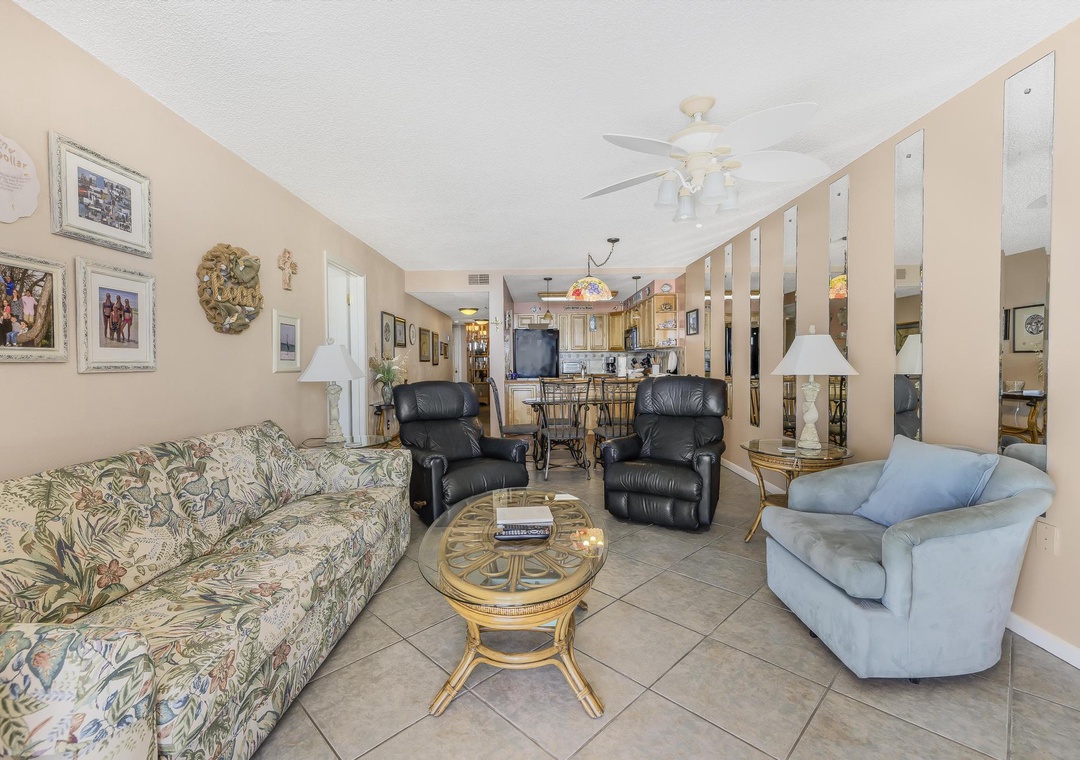 This three-bedroom, two-bath condo comfortably sleeps 8 guests, offering everyone their own space to unwind. The fully equipped kitchen has everything you need for home-cooked meals (just bring the groceries!), while the cozy living area features a smart TV and free WiFi for your entertainment.