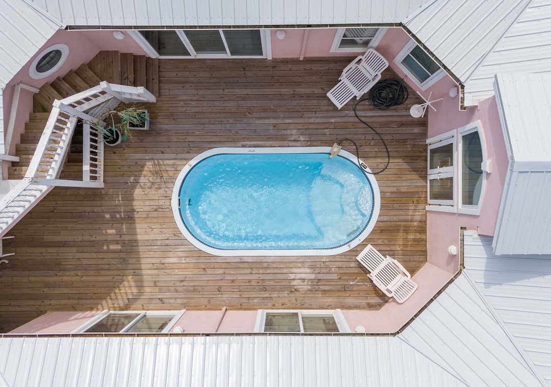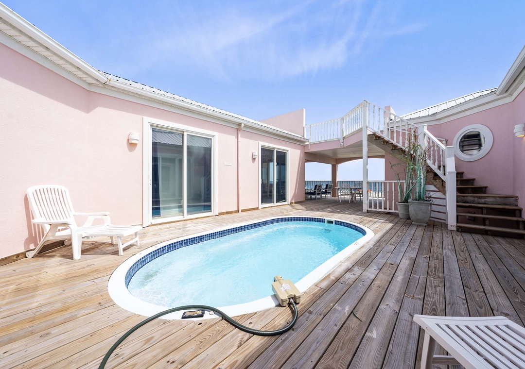 Spend your days soaking up the sun on the beach just steps away, then cool off in the private plunge pool located in the home's quiet courtyard. Multiple balconies and a rooftop deck provide plenty of spots to relax with a coffee or cocktail while enjoying the Gulf breeze.