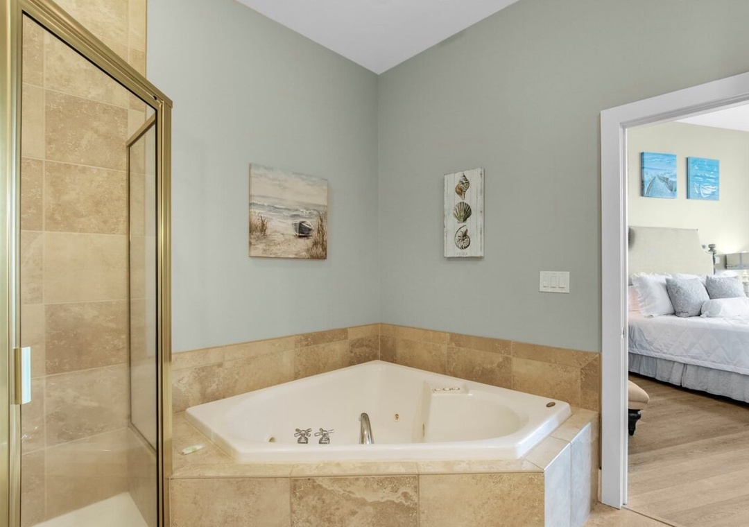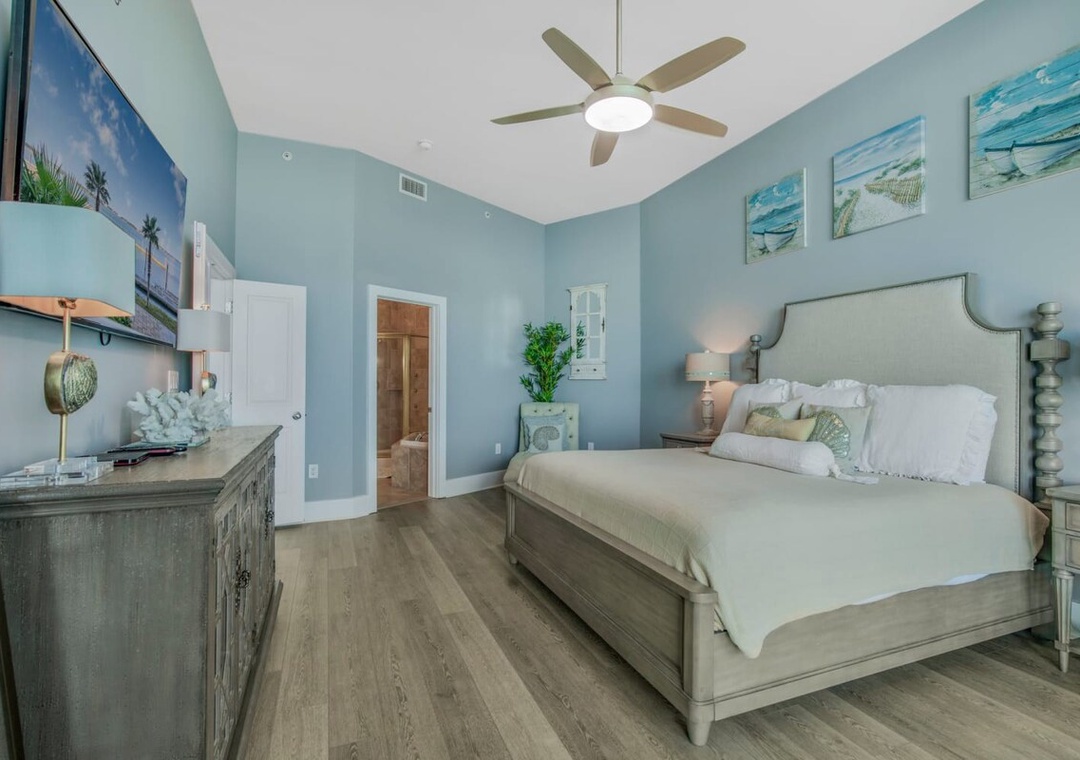 The large main bedroom features a king-size bed with flat screen TV. Access to the private balcony with stunning views coming into the main bedroom. En-suite main bathroom features a large vanity with double sinks with walk-in shower plus a soaking tub. The second bedroom features a king-size bed with en-suite bathroom featuring a shower/tub combo. The third bedroom features a queen-size bed with a third bathroom has a walk-in shower