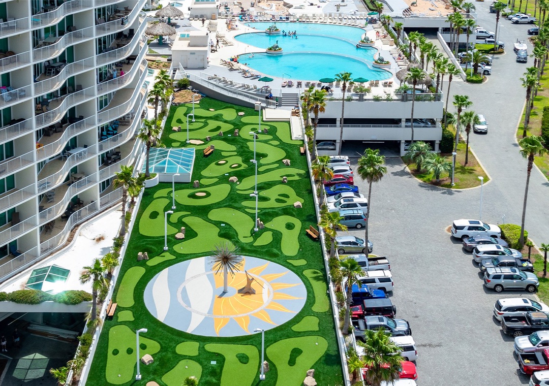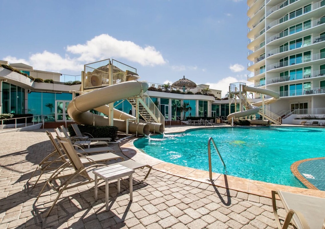 Welcome to the spectacular Caribe Resort in Orange Beach! Luxury amenities include outdoor pools, heated indoor pools, lazy river, hot tubs, waterslides, fitness center, tennis and basketball courts, and putting green. For the boat lovers there is a full-service marina onsite and boat slips to use during your stay. Onsite beach trolley service will run you over to the public beach access point from the hours of 8 am to 8 pm. Savor a meal at the fabulous onsite seafood restaurant, Cobalt.