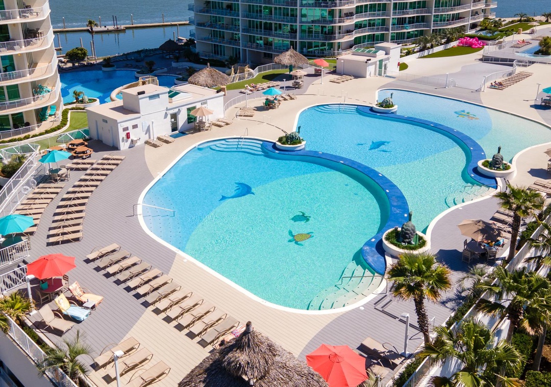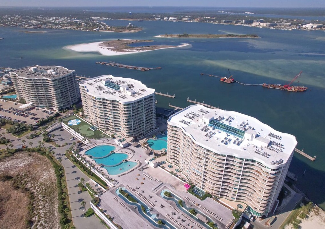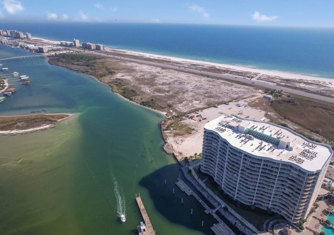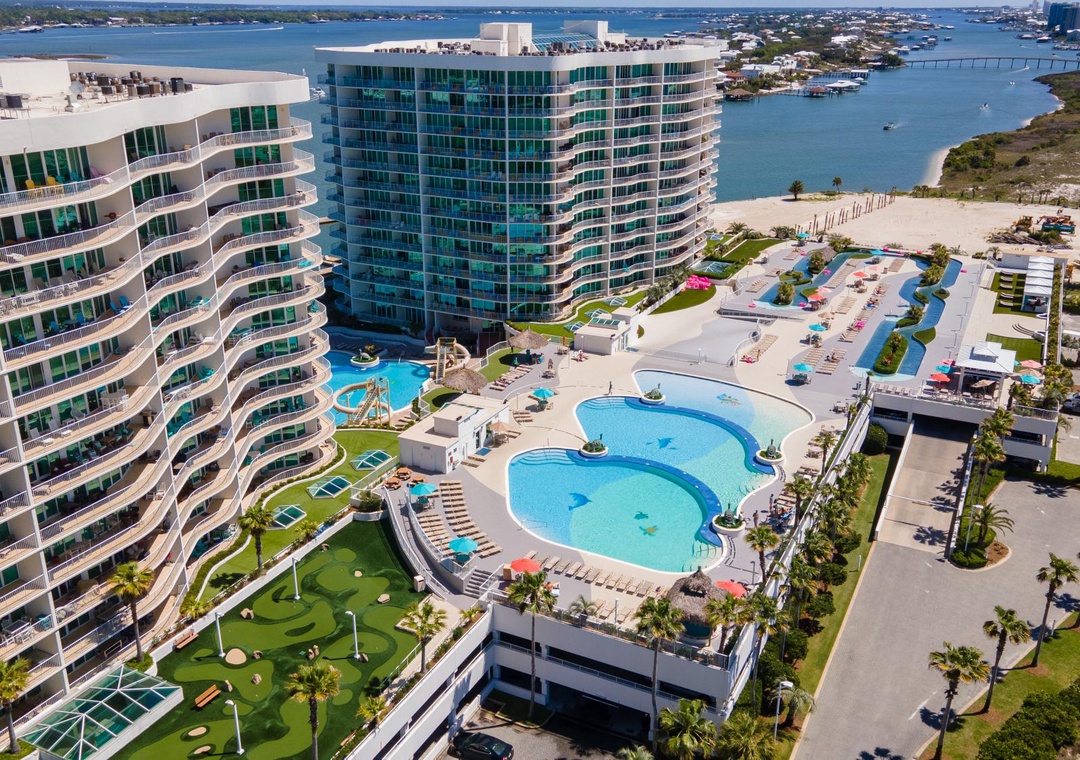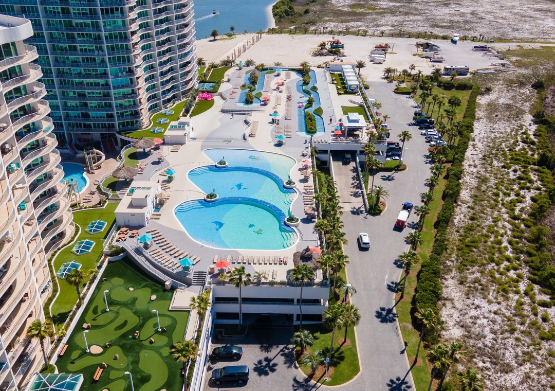 Caribe Resort is located near the Perdido Bay Bridge in Orange Beach. Onsite you have the fabulous restaurant Cobalt and full service Caribe Marina. The amenities at Caribe Resort are unlimited with multiple outdoor pools, waterslides, heated indoor pools, lazy river (closed temporarily should reopen Memorial Day), hot tubs, sauna and steam rooms, fitness center, putting greens, basketball and tennis courts. The white sands are calling with a beach trolley service that will take you from Caribe over to the public beach access. A short drive to many favorite restaurants including Louisiana Lagniappe, Voyagers, and The Gulf. Plenty of adventure as well with fishing charters, dolphin cruises, biking, Waterville USA, mini golf, and much more. Less than 2 miles from the world-famous Flora-Bama Bar.