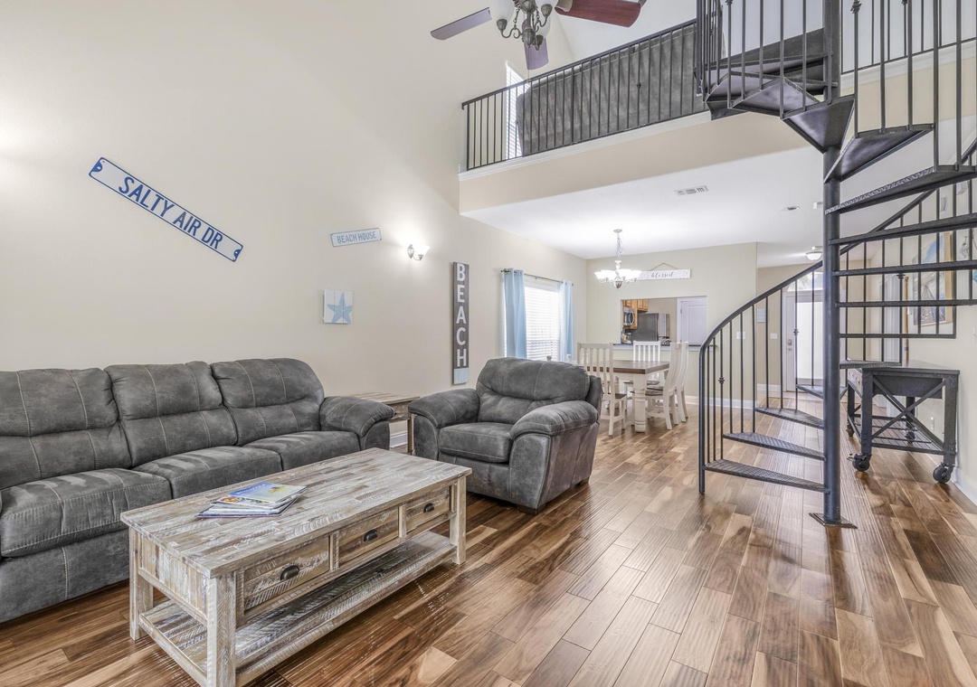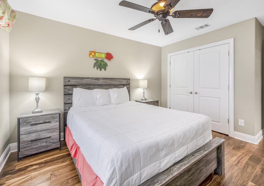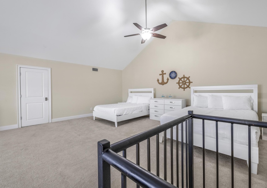 Welcome to Coral Retreat, a two-bedroom townhouse with an additional upstairs loft area in the gated community of Banana Bay Villas in Perdido Key. The open-concept area has a well-equipped kitchen with a dining table that comfortably seats six. The spacious living space is the perfect place to chill after a day on the beach. Outside you will find a private patio with a gas grill to enjoy a cookout. The main bedroom features a queen bed and a flat-screen TV. The main bathroom has a shower/tub combo. The second bedroom has a queen bed with a flat-screen TV. The second bathroom has a shower/tub combo. Up the spiral staircase, you will find a cozy loft with two queen beds and a couch area, complete with a flat-screen TV.