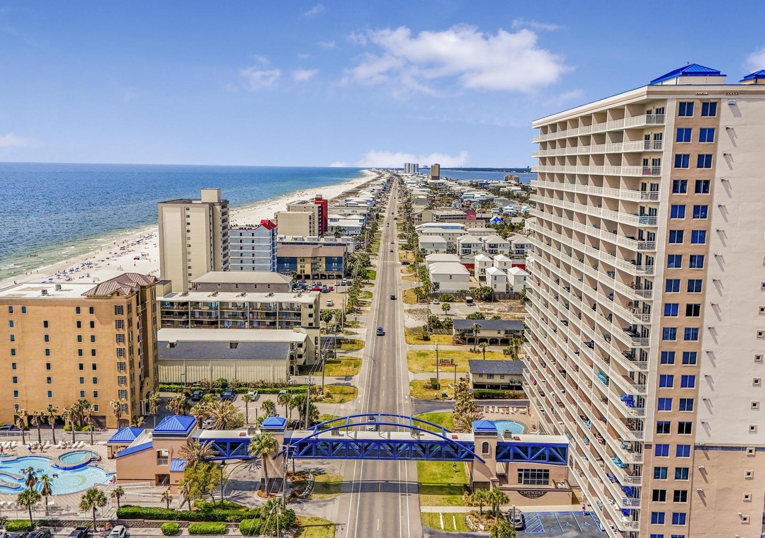 Crystal Tower is located in the heart of Gulf Shores and directly across from the white sand beaches of the Emerald Coast. Guests can walk to favorite local restaurants like Bahama Bob’s and The Beach House Kitchen or take a short drive to The Hangout, Sea-n-Suds, or Pink Pony Pub. Enjoy area attractions like Waterville USA, mini golf, shopping, and the Alabama Gulf Coast Zoo—all nearby.