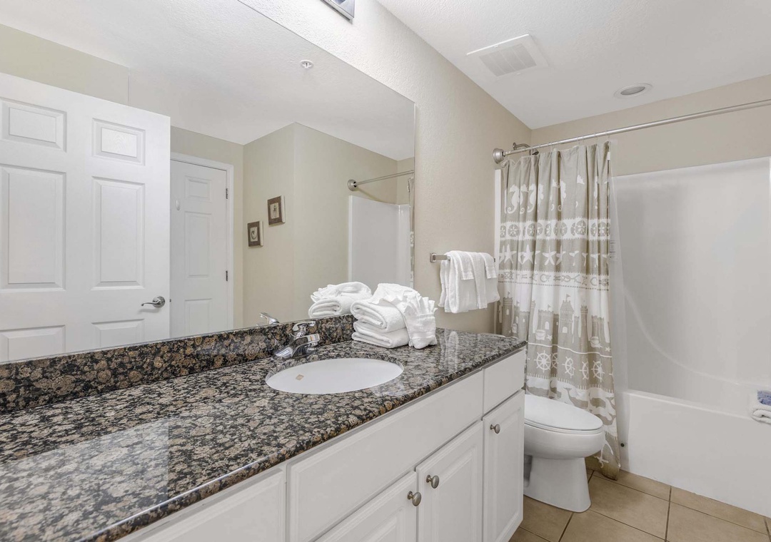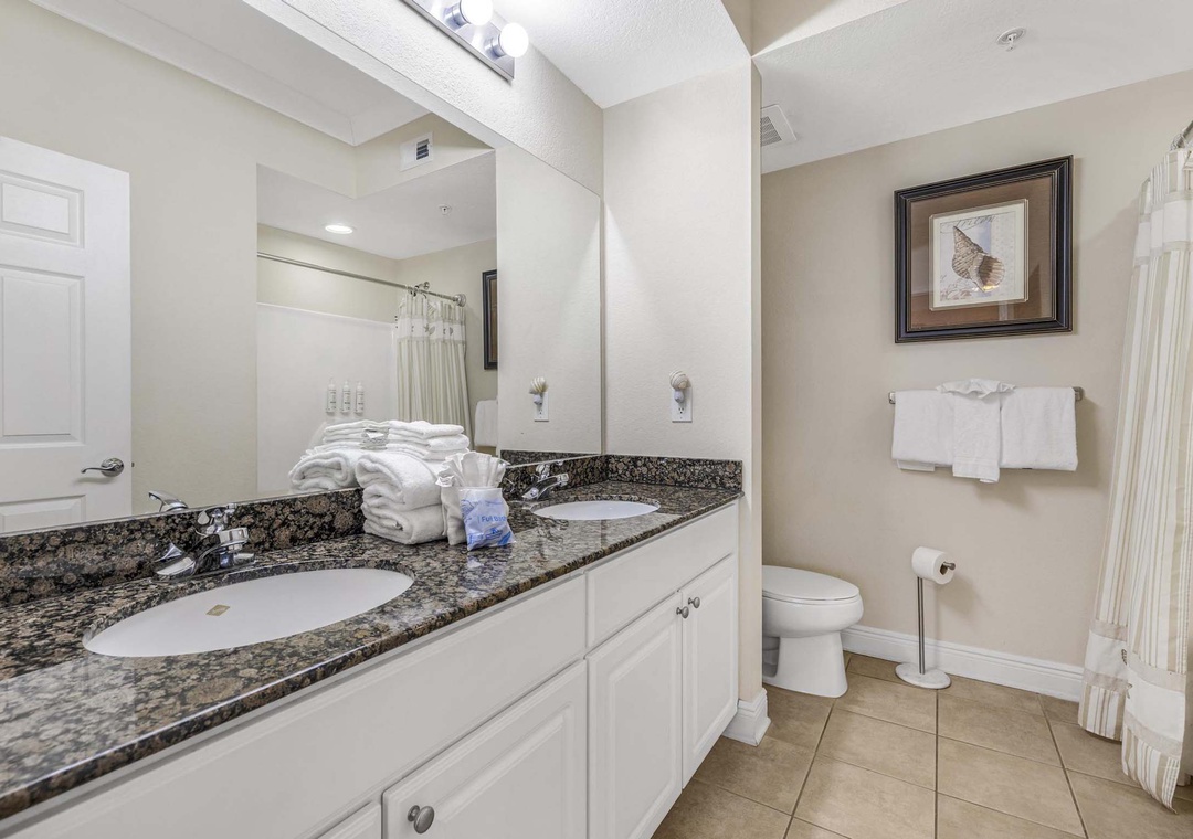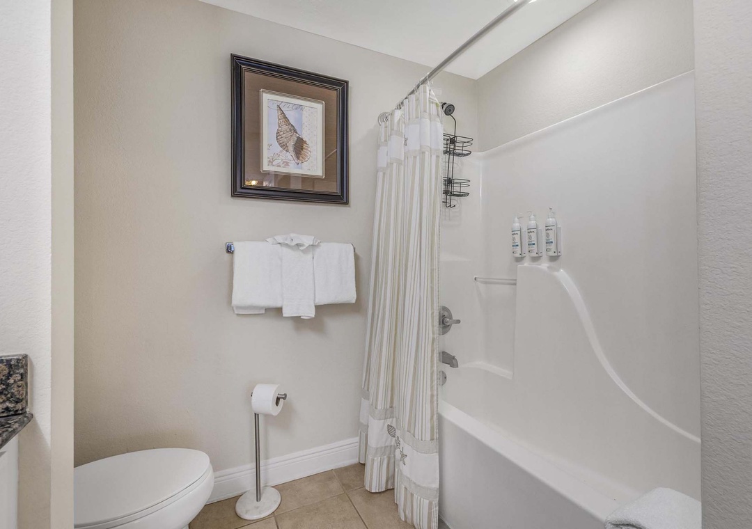 The primary bedroom features a king bed with gulf views and access to balcony. The ensuite primary bathroom has a shower/tub combo. The second bedroom features a queen bed and a twin bed. The second bathroom has a shower/tub combo and this unit has a washer and dryer for your convenience.
