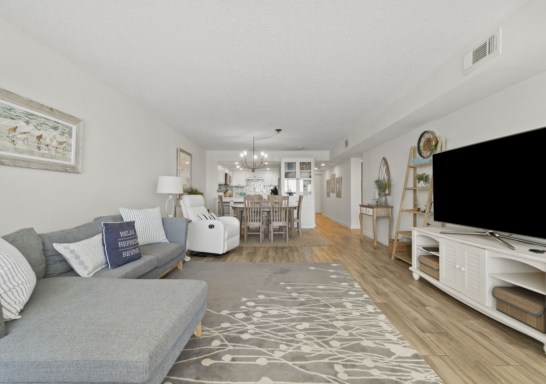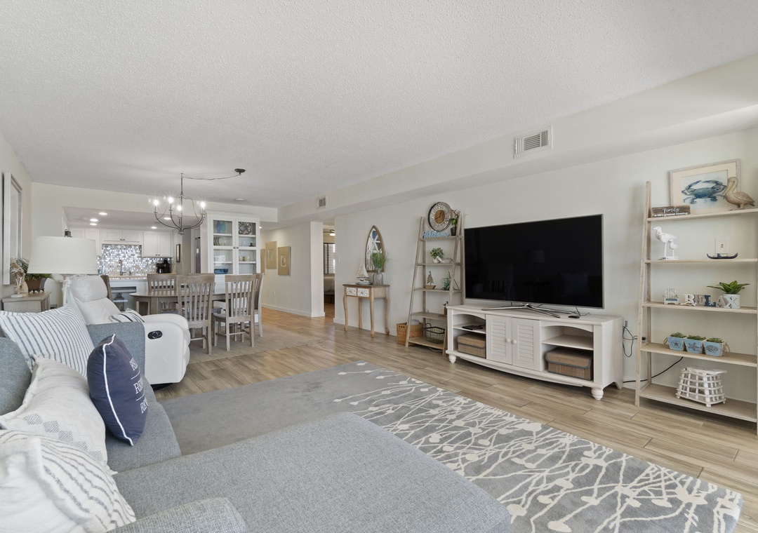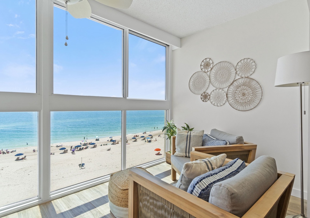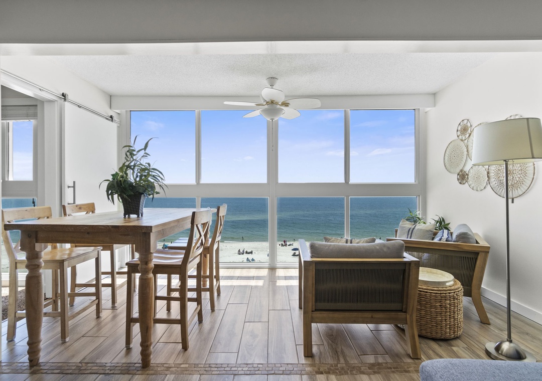 Newly renovated three bedroom condo with great square footage through out the unit. The spacious open concept living space has floor to ceiling windows with breathtaking views of the Gulf. The well-equipped and renovated kitchen is stocked with pots/pans/utensils ready for a homecooked meal. Enjoy the two dining tables with plenty of room for the family to share a meal around. Kick back in the living room with large flat screen TV after a day on the beach.