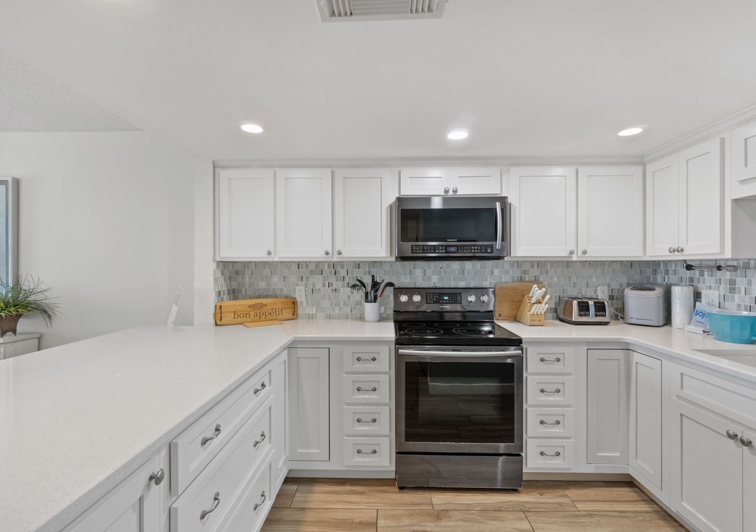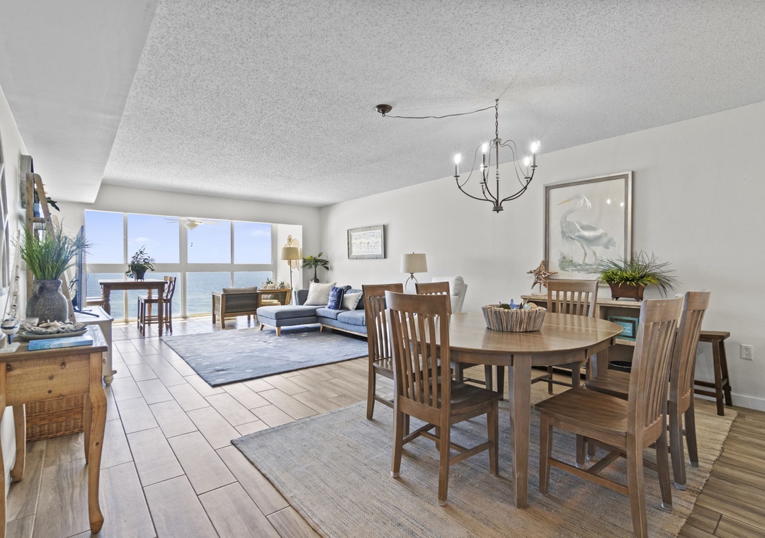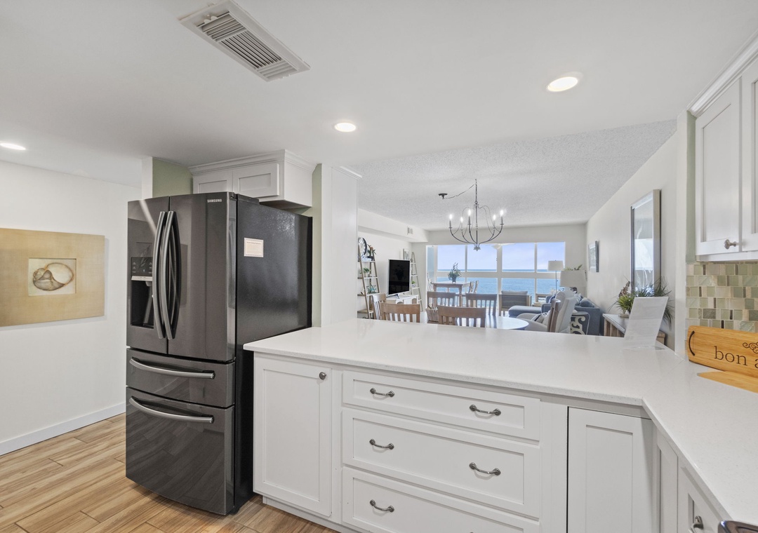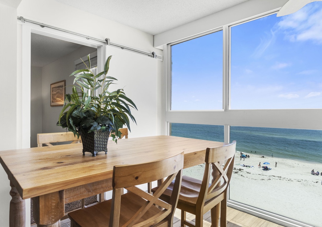 Newly renovated three bedroom condo with great square footage through out the unit. The spacious open concept living space has floor to ceiling windows with breathtaking views of the Gulf. The well-equipped and renovated kitchen is stocked with pots/pans/utensils ready for a homecooked meal. Enjoy the two dining tables with plenty of room for the family to share a meal around. Kick back in the living room with large flat screen TV after a day on the beach.