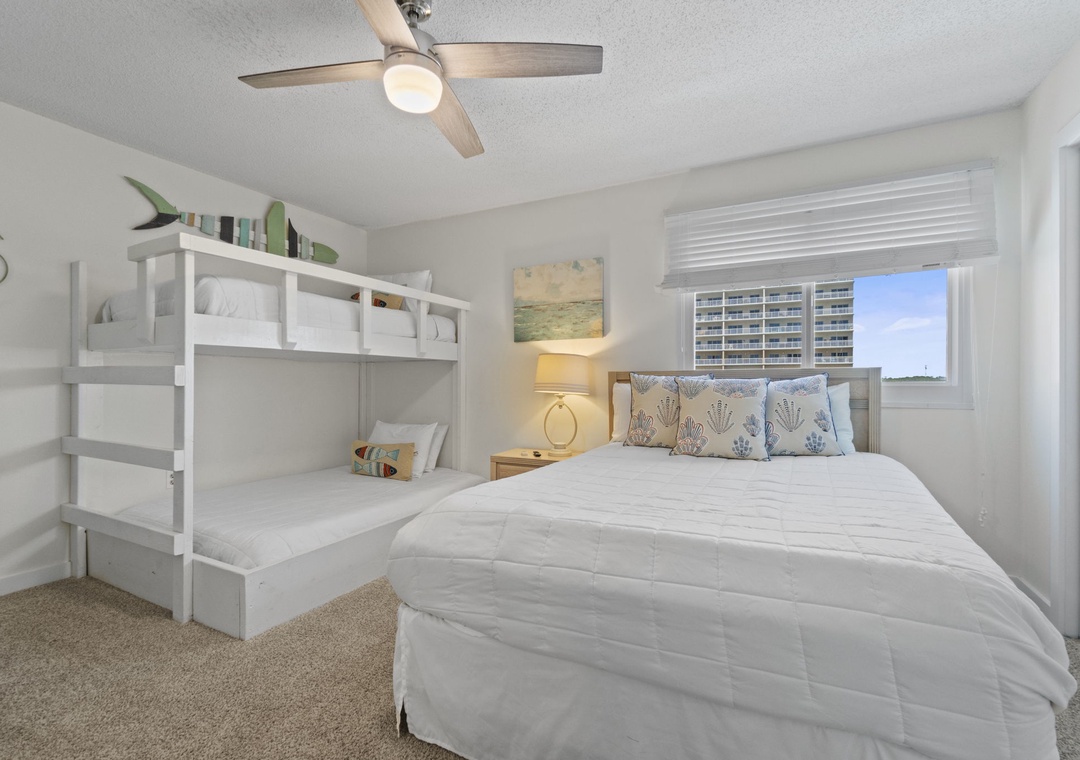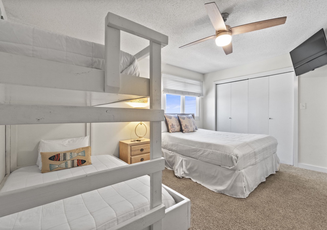 Third Bedroom: Queen Bed and Bunkbeds with two Twin-beds
