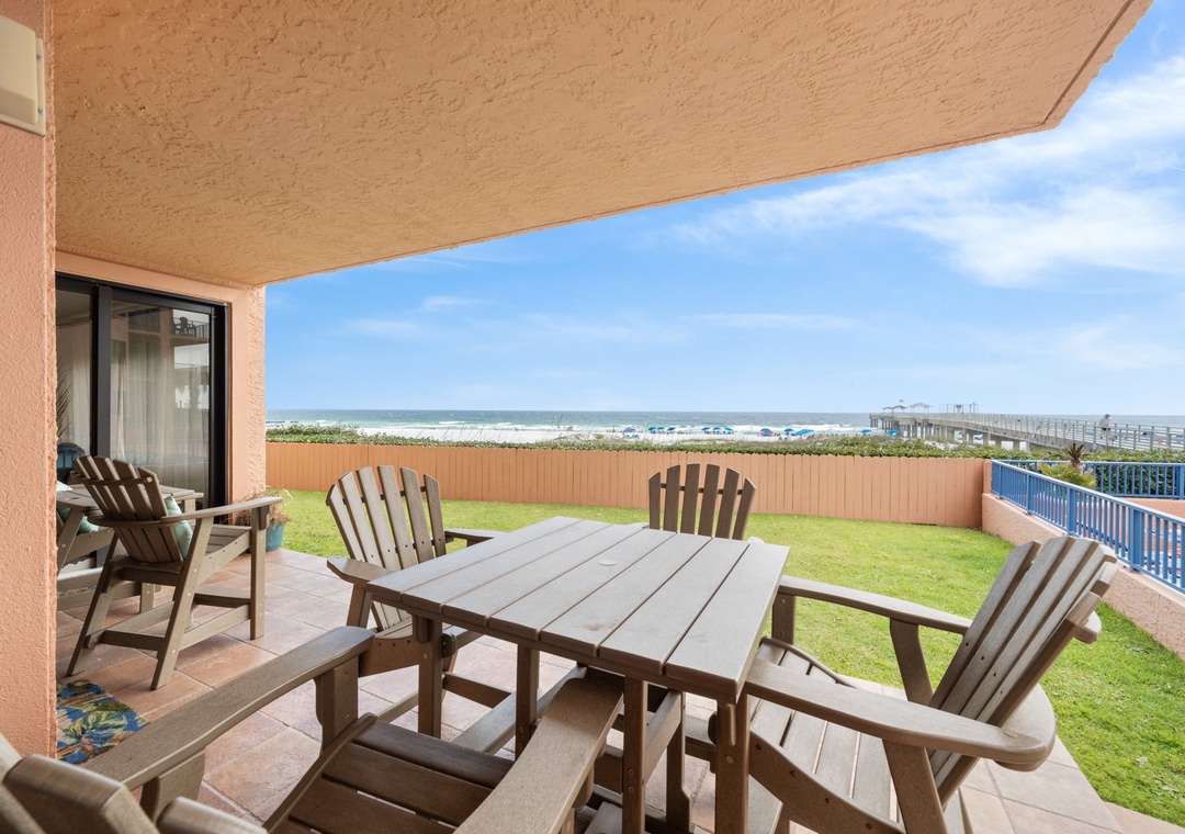 After staying in this unit last year for our annual family beach trip, we were delighted to find that this unit was available again this year. The condo's layout and location is perfect for our family of 7, with the pool, beach and fishing pier just steps away. Having two little ones with us, the small yard right off the covered patio is an extra bonus. There are also plenty of great restaurants and ice cream shops close by. We have loved our stays both years and hope to return again next year!- Reviewed On: 9/5/2025