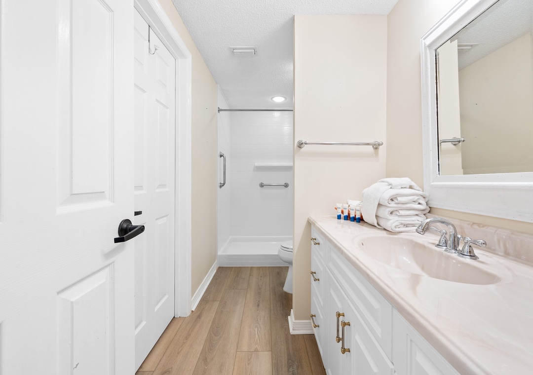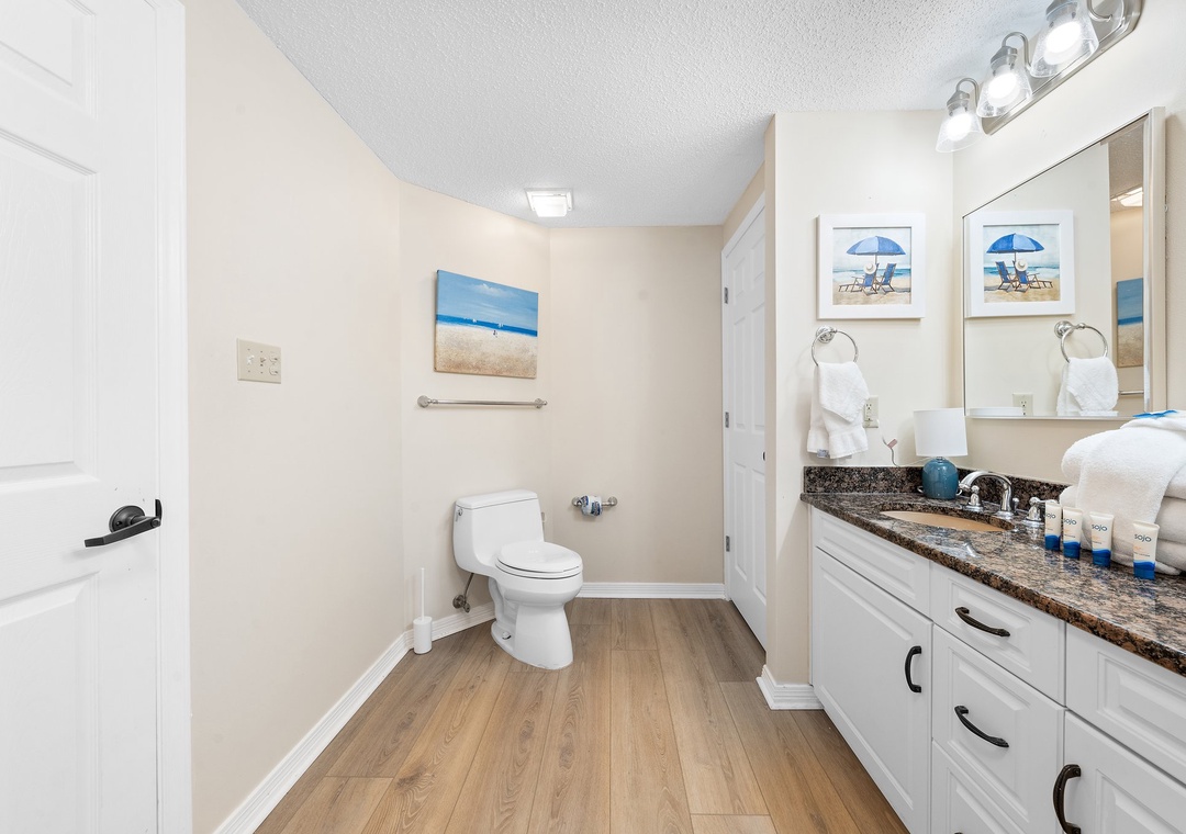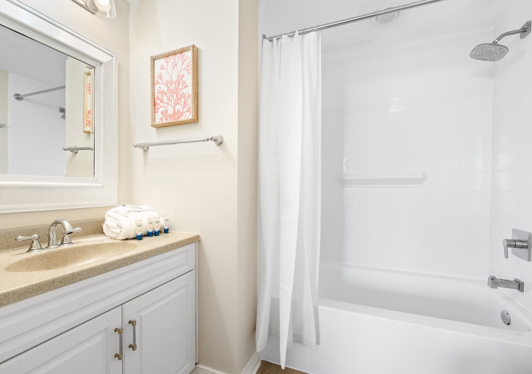 I looked around extensively before settling on the Four Seasons unit and couldn't have been happier with my decision. My husband and I were traveling with our adult children and a two-year-old grandchild and this was absolutely perfect. It was so easy to access both the pool and the beach, even with a toddler in tow and the small yard right outside was perfect to let her play in when we weren't at the beach or the pool. And we loved the serene views from the main living area/kitchen and the bedrooms - just beautiful! There were also several beach chairs, numerous boogie boards and beach toys and buckets for the little one. The complex is also just a short drive away from a great seafood restaurant - we picked up food from The Shrimp Basket two times out of our four-night stay - and is also close to grocery and drug stores. We had an idyllic stay and hope to make it back next year!- Reviewed On: 8/1/2024