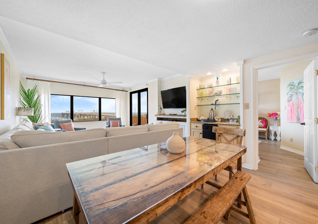 This condo was absolutely beautiful. It was decorated very beautifully with many things to make you feel at home, like throw blankets. The kitchen was wonderfully stocked with anything you would need to cook with. We were there for Thanksgiving and had no problem cooking our Thanksgiving meal. The view of the ocean from inside the condo was breathtaking. We were pleasantly surprised to find a small Christmas tree lit and beautifully decorated in the living room. The porch furniture was very nice and the yard off to the side was a nice edition. The private pier was a wonderful experience, especially for my parents who wanted to be near the ocean, but is hard for them to walk in the sand. We had a wonderful stay and will definitely be back.- Reviewed On: 12/1/2024
