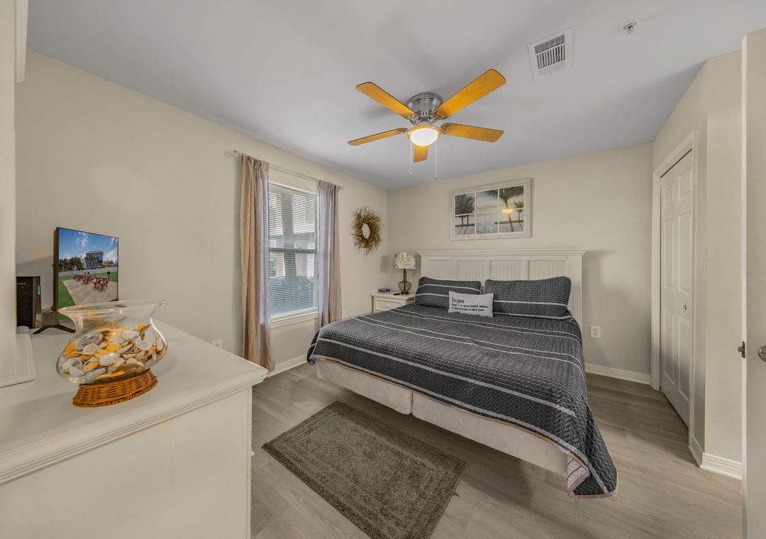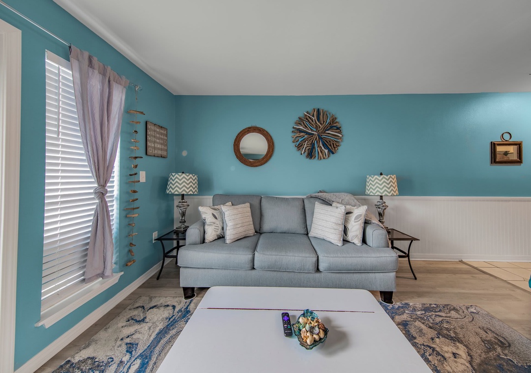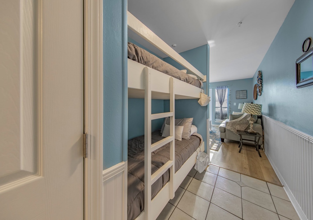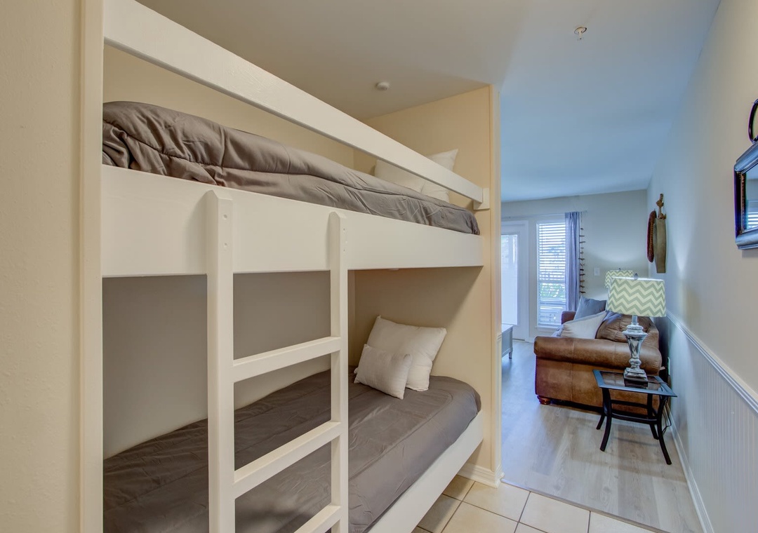 Located on the ground floor, park in the lot outside the condo and walk-in using the code. The bedroom is located on your left with a king-size bed and flat-screen television. The bathroom has a tub/shower combination and is accessed from the bedroom or the hall. There are bunks in the hall (best suited for children) and the sofa in the living area is a sleeper so the condo comfortably sleeps up to 6 people! The hall opens into a living area, kitchen and dining area with a flat-screen television and patio access. You have a great view of the outdoor pool and easy access to the pool & hot tub. Both televisions inside have Roku so you can enjoy cable or watch you Netflix, Hulu, Disney Plus+ etc. while staying on vacation. Come relax in this spacious one-bedroom condo at Grand Caribbean East in Perdido Key, Florida!