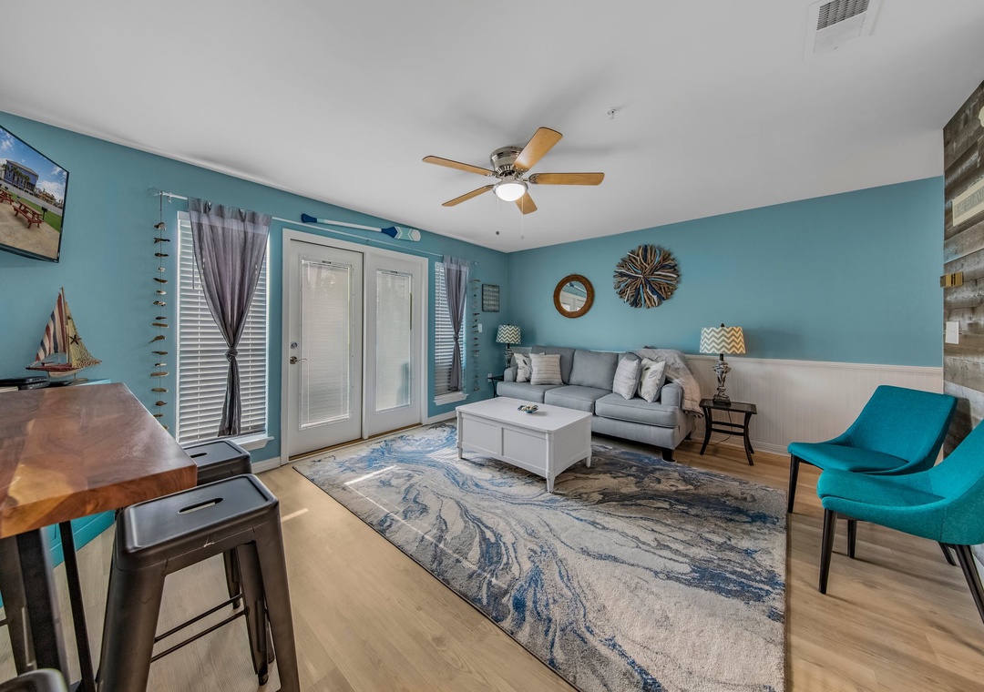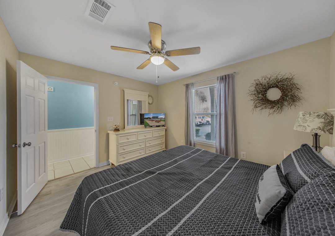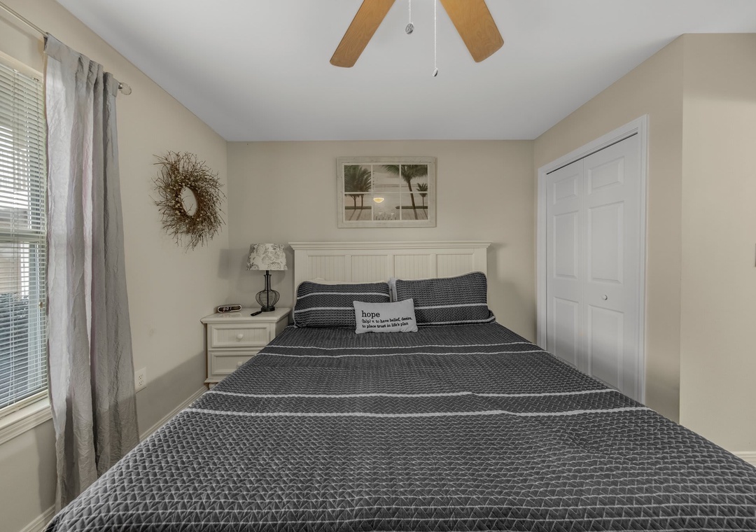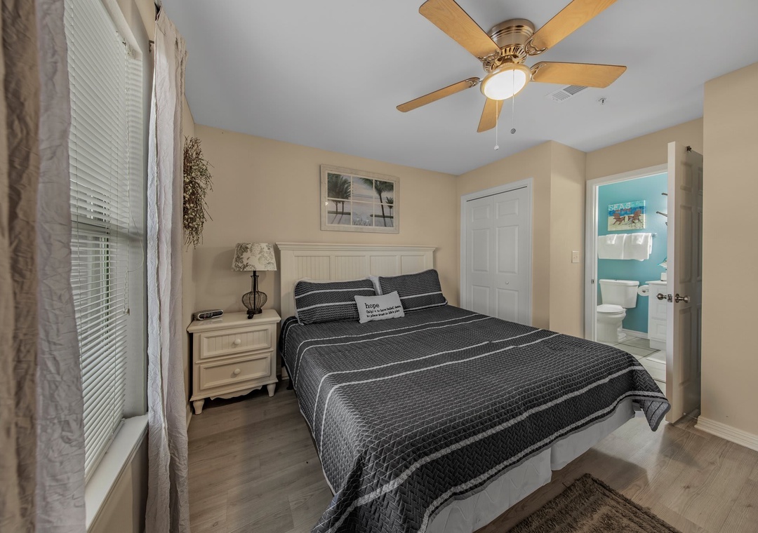 Located on the ground floor, park in the lot outside the condo and walk-in using the code. The bedroom is located on your left with a king-size bed and flat-screen television. The bathroom has a tub/shower combination and is accessed from the bedroom or the hall. There are bunks in the hall (best suited for children) and the sofa in the living area is a sleeper so the condo comfortably sleeps up to 6 people! The hall opens into a living area, kitchen and dining area with a flat-screen television and patio access. You have a great view of the outdoor pool and easy access to the pool & hot tub. Both televisions inside have Roku so you can enjoy cable or watch you Netflix, Hulu, Disney Plus+ etc. while staying on vacation. Come relax in this spacious one-bedroom condo at Grand Caribbean East in Perdido Key, Florida!