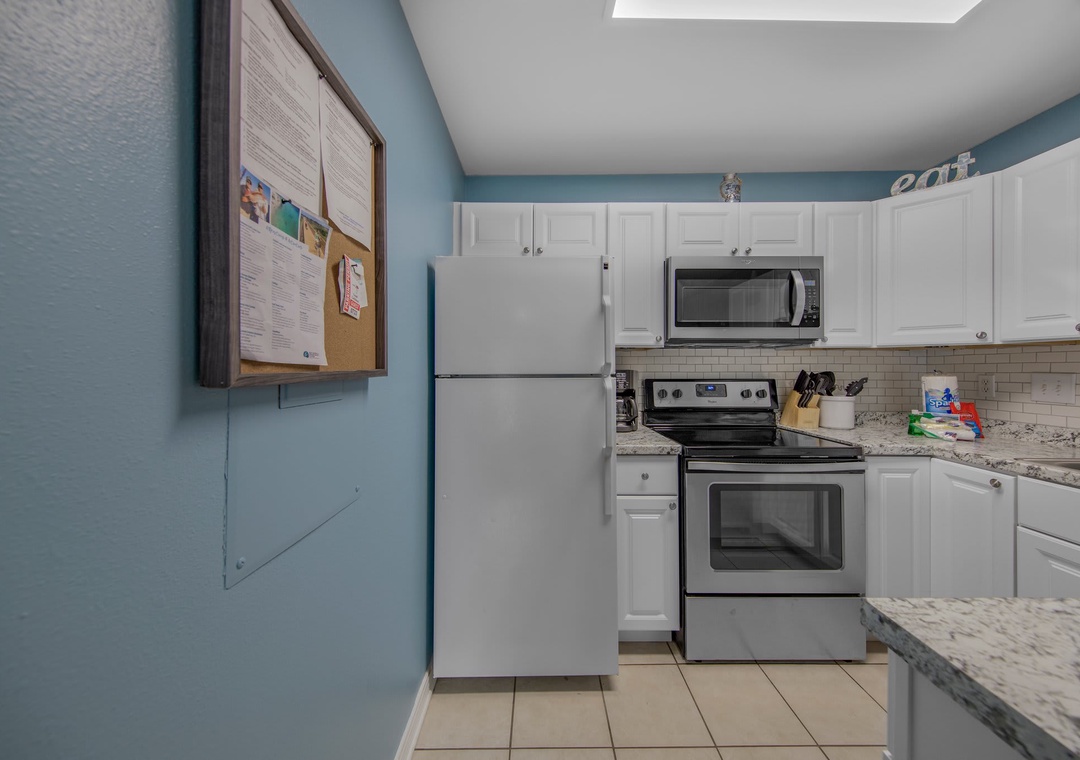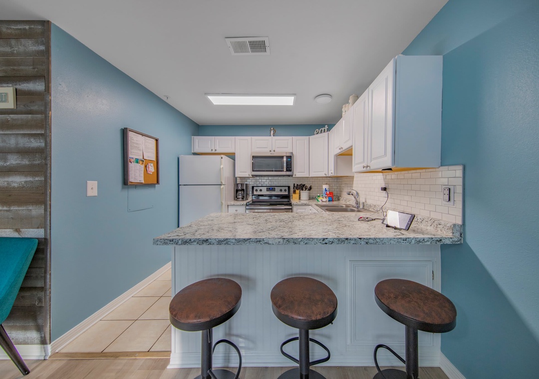 The condo was well stocked, kitchen utinsels and such. The shower liner needs washed more often, slime. One roll of toilet paper is not enough. No gate code was given before check in. Thankfully there were other patron that did have the code and were willing to share. This code also gave us access to the beach.- Posted: 5/19/2022