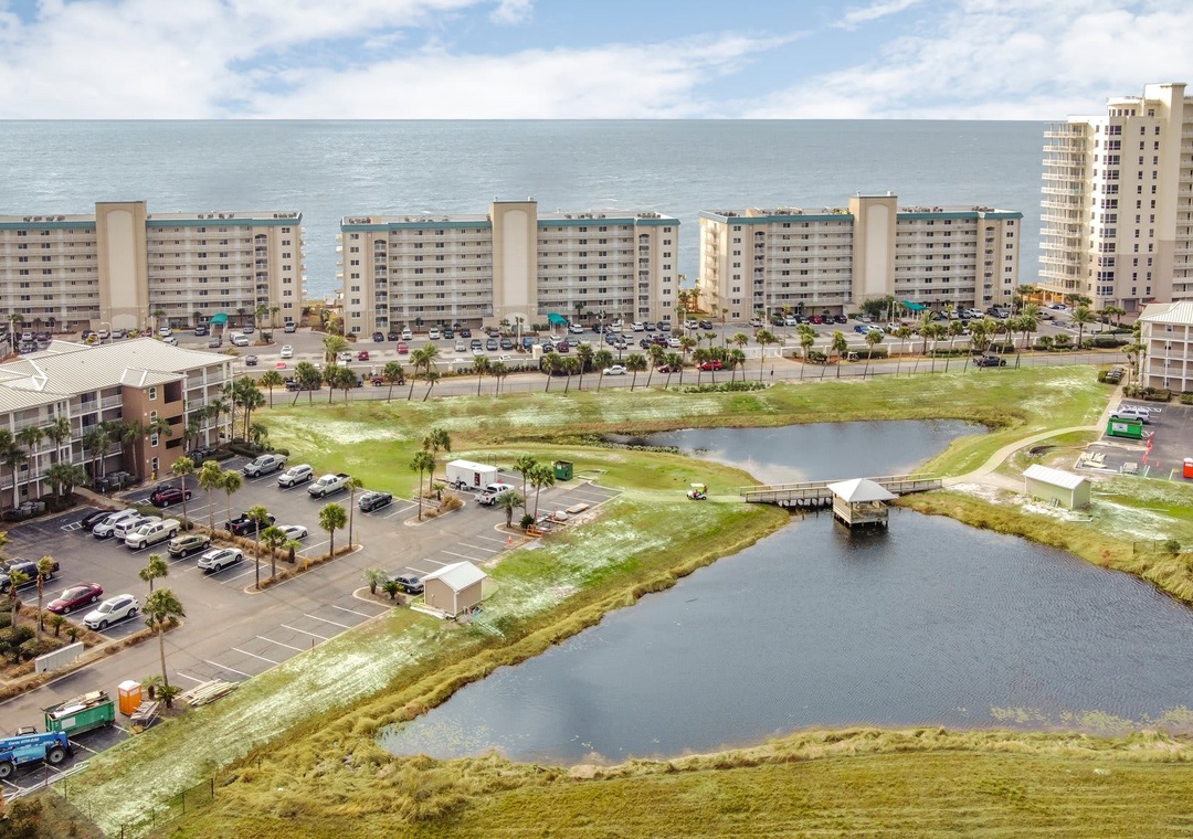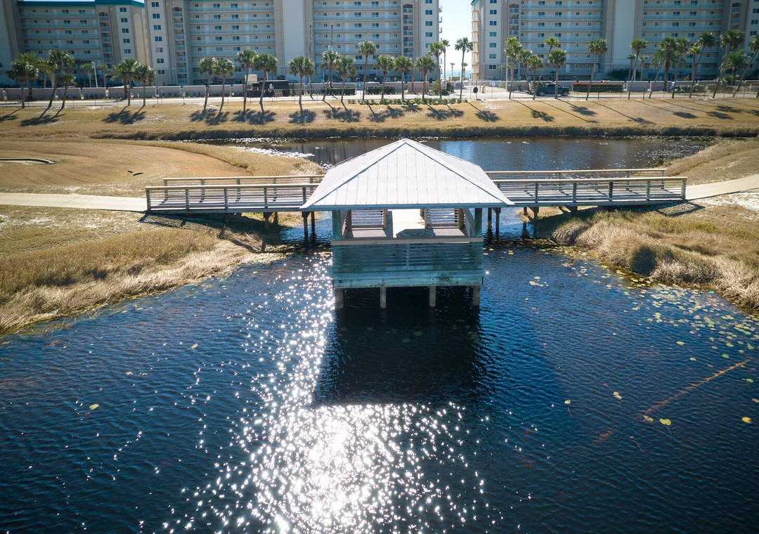 Grand Caribbean is centrally located in Perdido Key across the street from the white-sandy beaches and emerald-green waters of the Gulf of Mexico with deeded beach access. This ground-floor condo sleeps up to 6 people! The property has a freshwater lake with a pier and a gazebo in the middle. Each tower has an outdoor pool and hot tub surrounded by a sundeck and chairs. The condo is less than 6 miles east of the world-famous Flora-Bama Lounge & Oyster Bar.