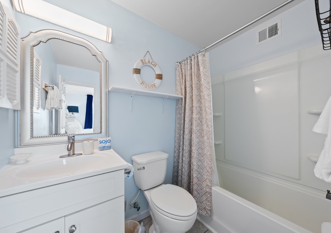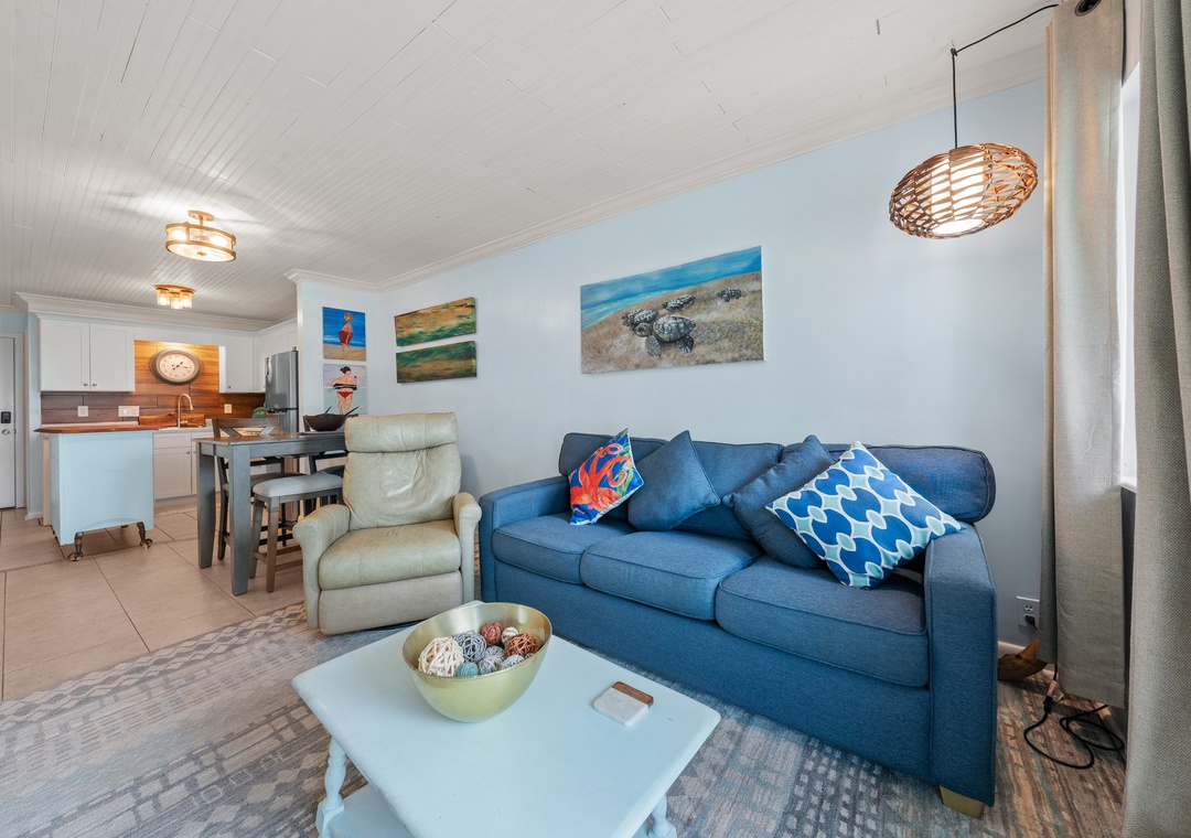 Walk into an updated, beautiful condo with views of the Gulf of Mexico. Relax on the sleeper sofa or leather recliner and enjoy watching your favorite movie channels on the large flat-screen TV! Prepare meals in the updated kitchen fully stocked with plenty of pots and pans, cooking utensils, silverware, and dishes. The kitchen includes a custom floating island with additional storage and table seating for four. The primary bedroom has a Gulf view and an ensuite bathroom with a tub/shower combination. The guest bathroom has a large walk-in shower. The condo is outfitted with Smart TVs and free wireless high-speed internet. Just bring your beach towels! The condo is conveniently located close to the laundry facility with new commercial machines and is credit card operated. While here, enjoy the onsite amenities including six indoor and outdoor pools, hot tubs, tennis, racquetball, a gym, volleyball, and horseshoe pits. If you are a golfer, walk over to Kiva Dunes or you are minutes away from Peninsula Golf Club. Fort Morgan Marina and several restaurants are nearby! Come enjoy your vacation at Gulf Shores Plantation!