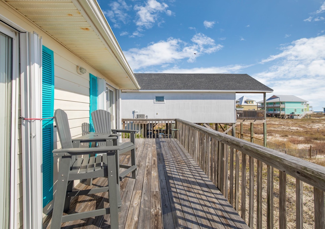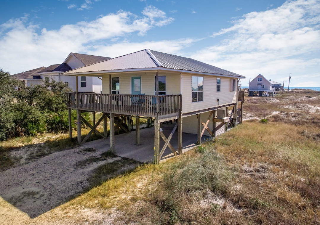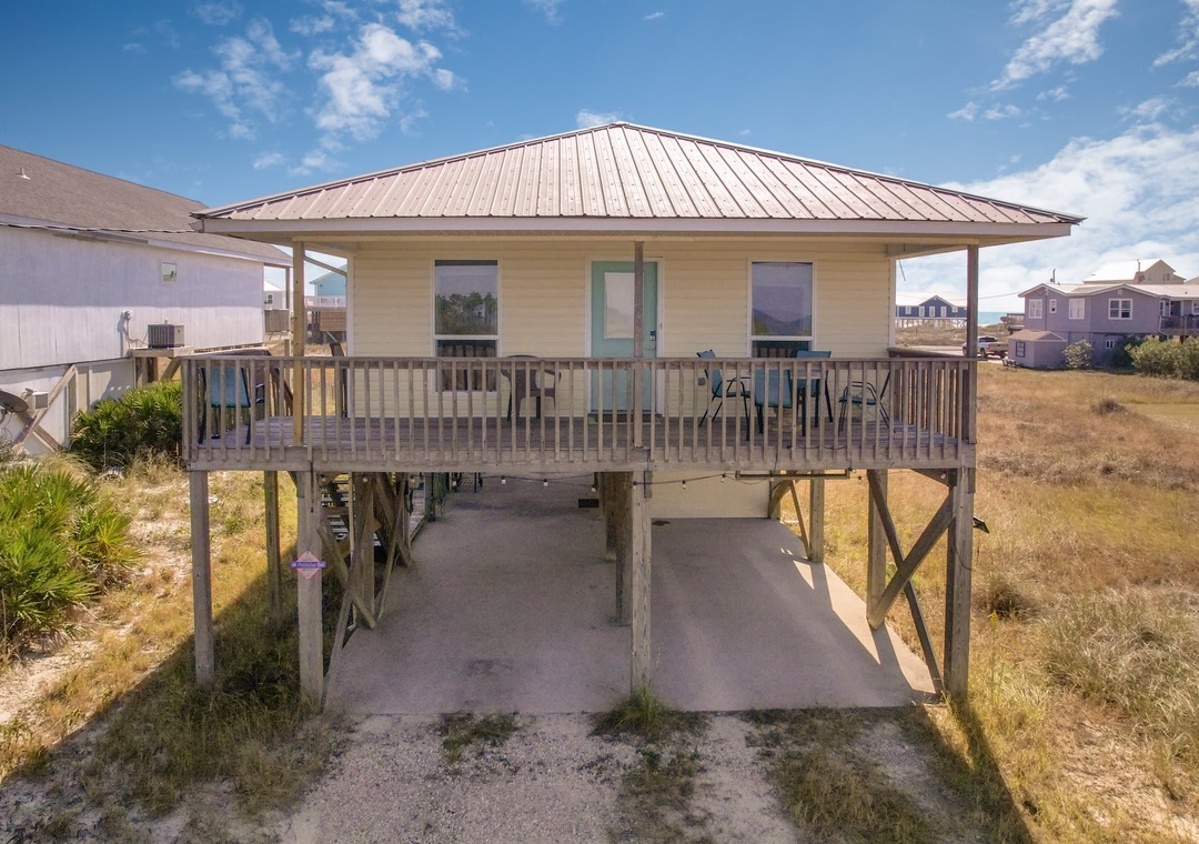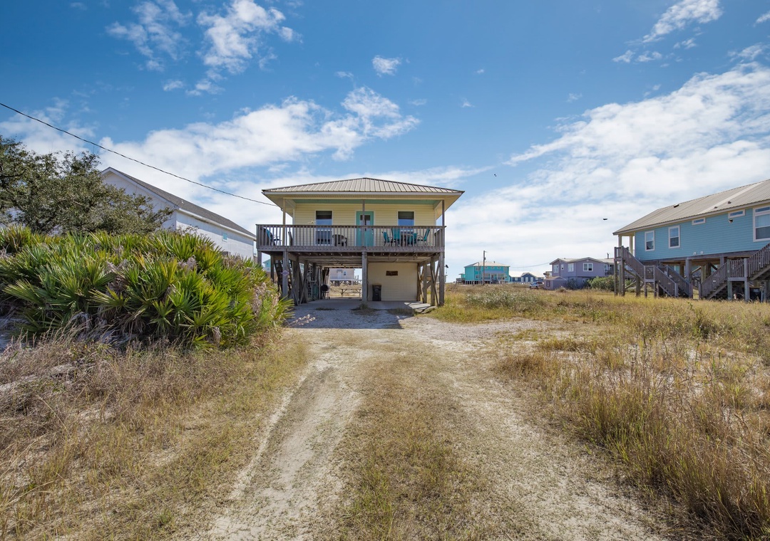 Take your next family vacation to this tranquil three bedroom house is the quiet of Fort Morgan. Walking distance to the white sandy beaches of the Gulf of Mexico. Drink your morning coffee from the balconies on the front or back of the house. A covered carport features a charcoal grill to entertain at night.