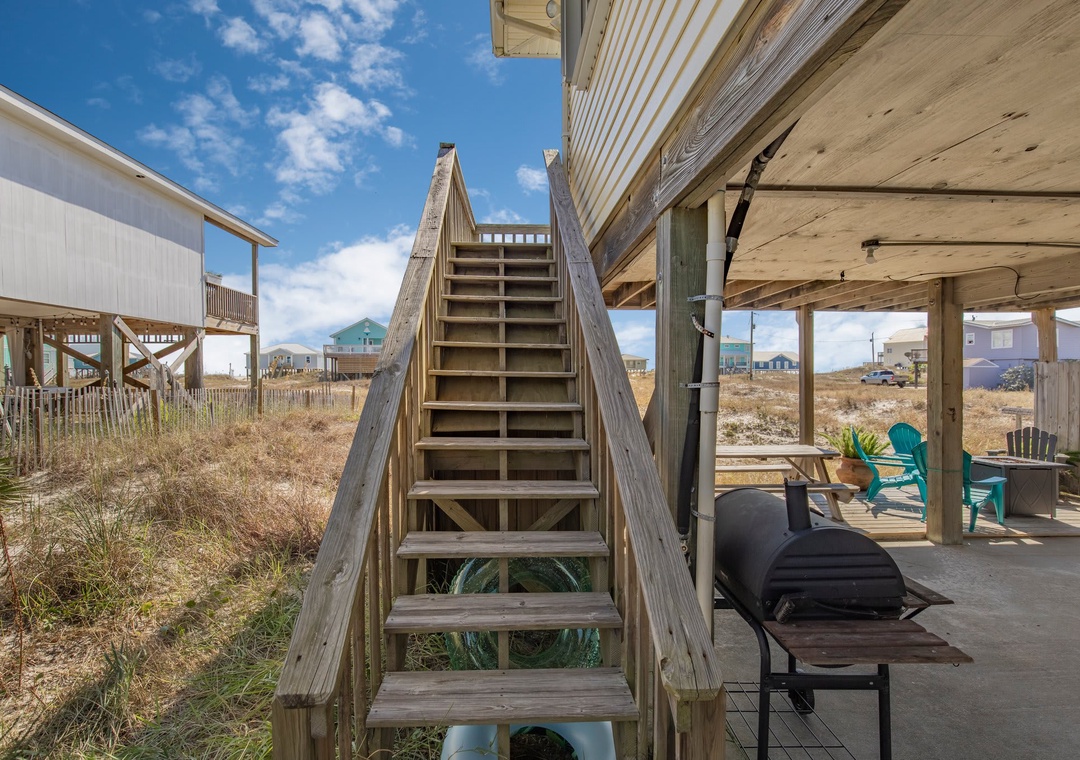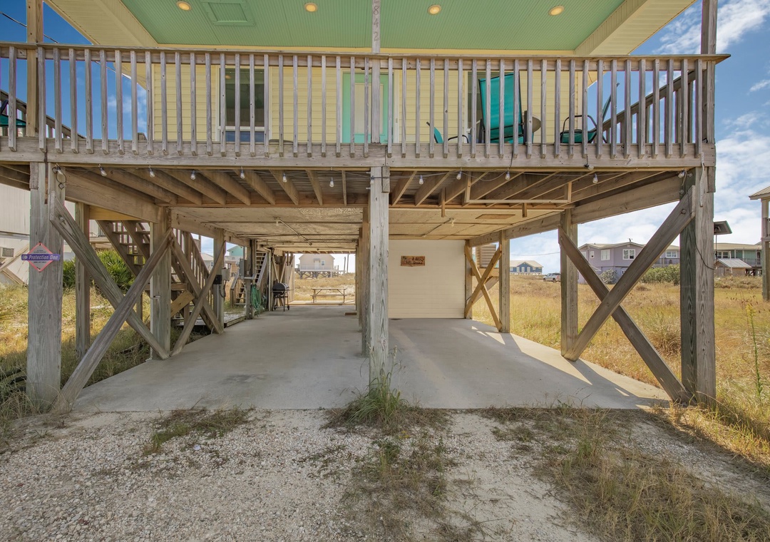 Welcome to Island Dream! There is a covered carport for your vehicle with additional parking in the driveway for a boat and trailer, if needed. When arriving at the house, walk up the stairs and enter the code provided. We hope you enjoy your stay at Island Dream!