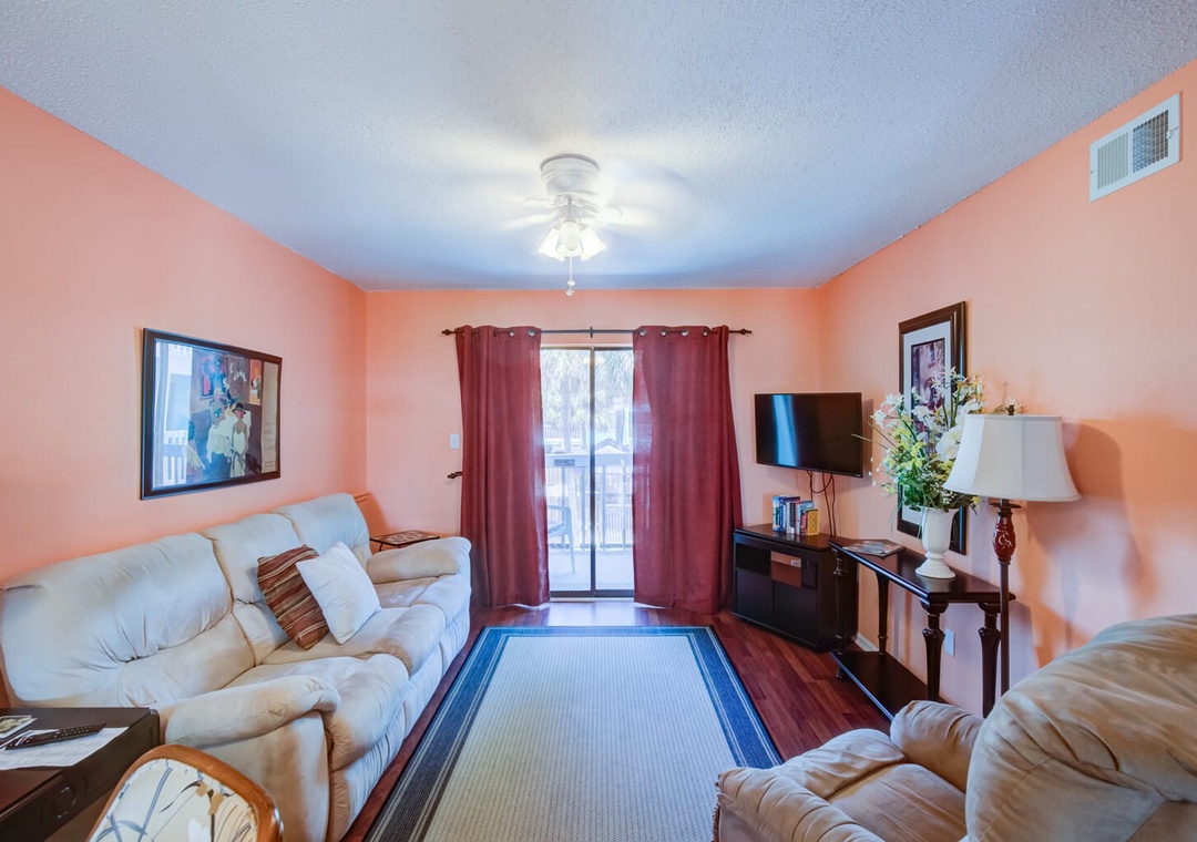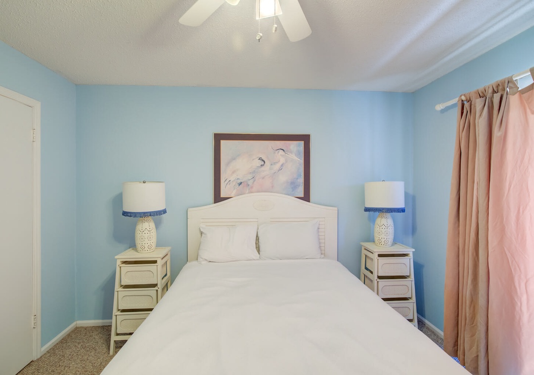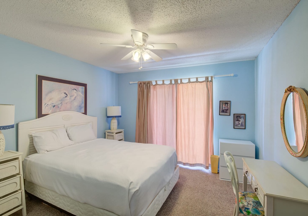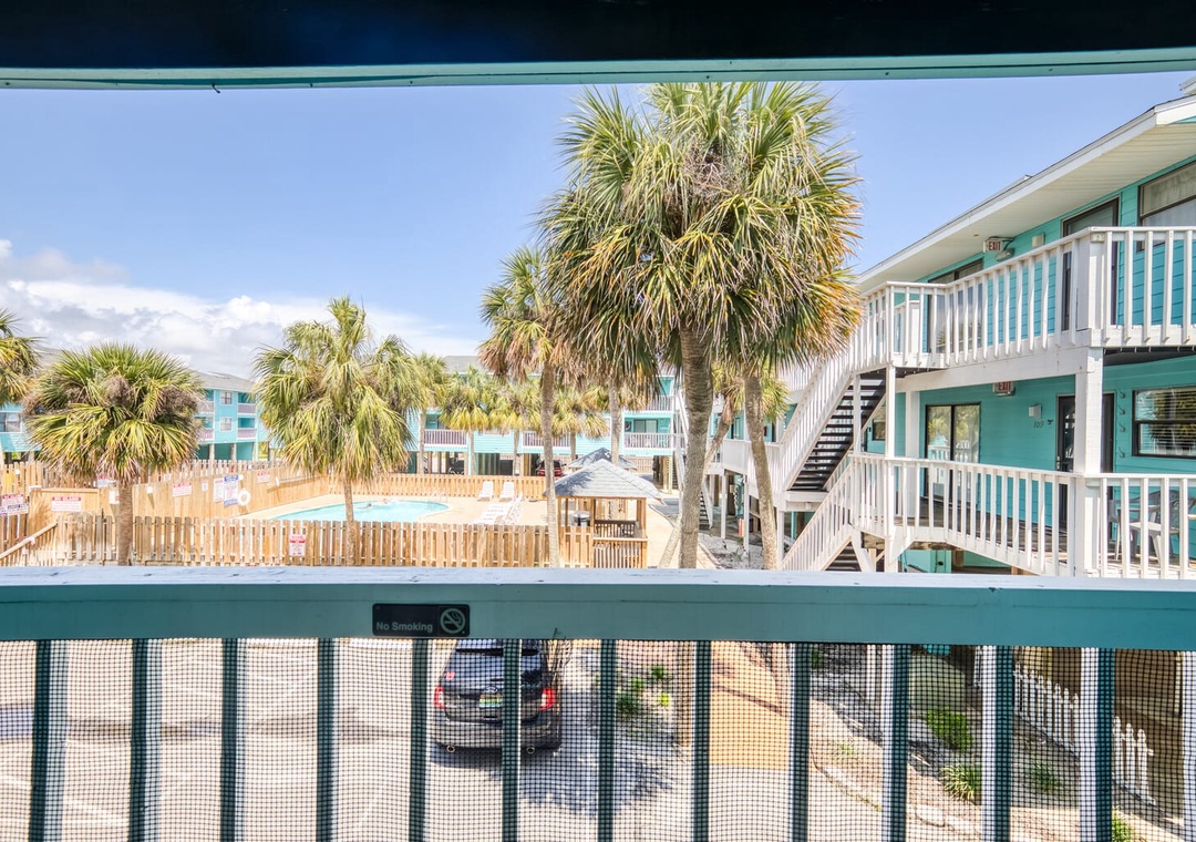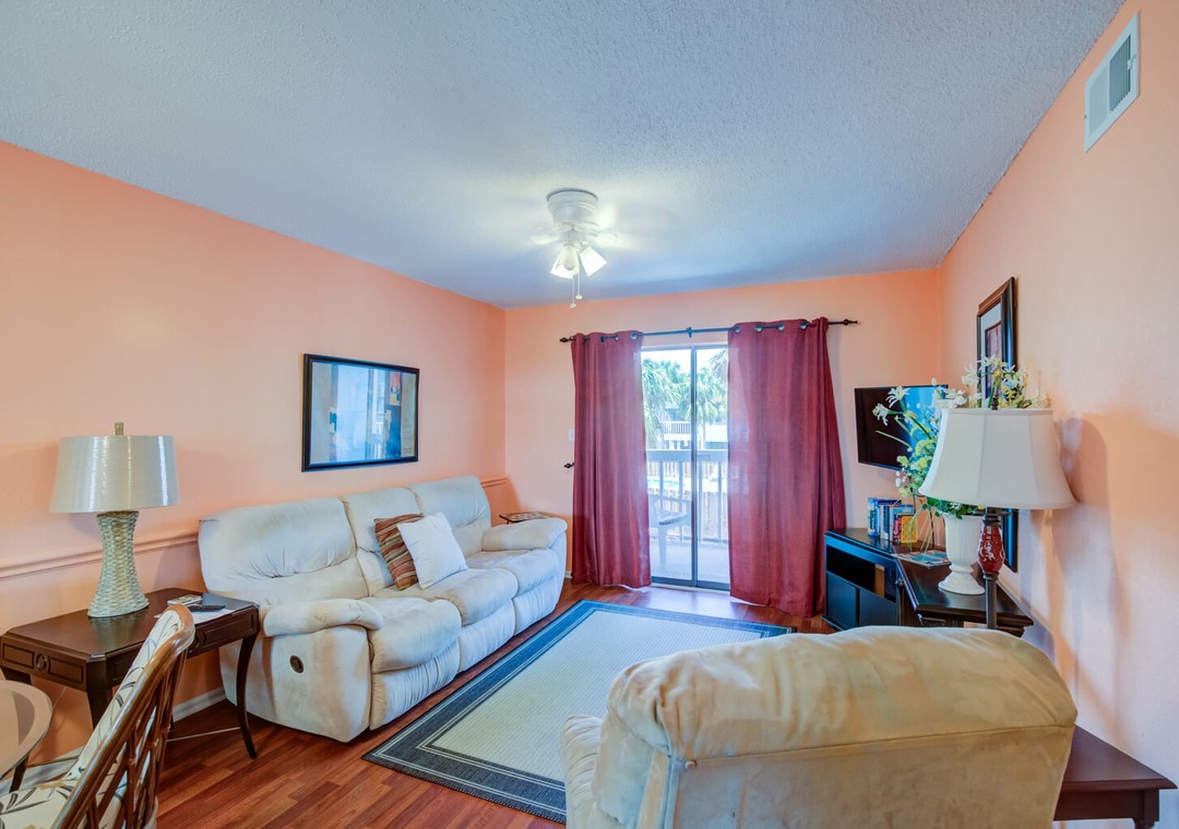 This charming two bedroom condo is perfect for your next family vacation! Walk into this cozy coastal condo with open concept living space and kitchen. The well-equipped kitchen is stocked with pots/pans/utensils to create a delicious family meal. The kitchen bar has seating for two with additional seating at the dining table to accommodate four. Kick back and relax in the comfortable living space with flat screen TV. Natural light flowing into the living space from your own private balcony. Both bedrooms have a queen-size bed. The bathroom has a shower/tub combo. A washer and dryer are located in the unit for your convenience.