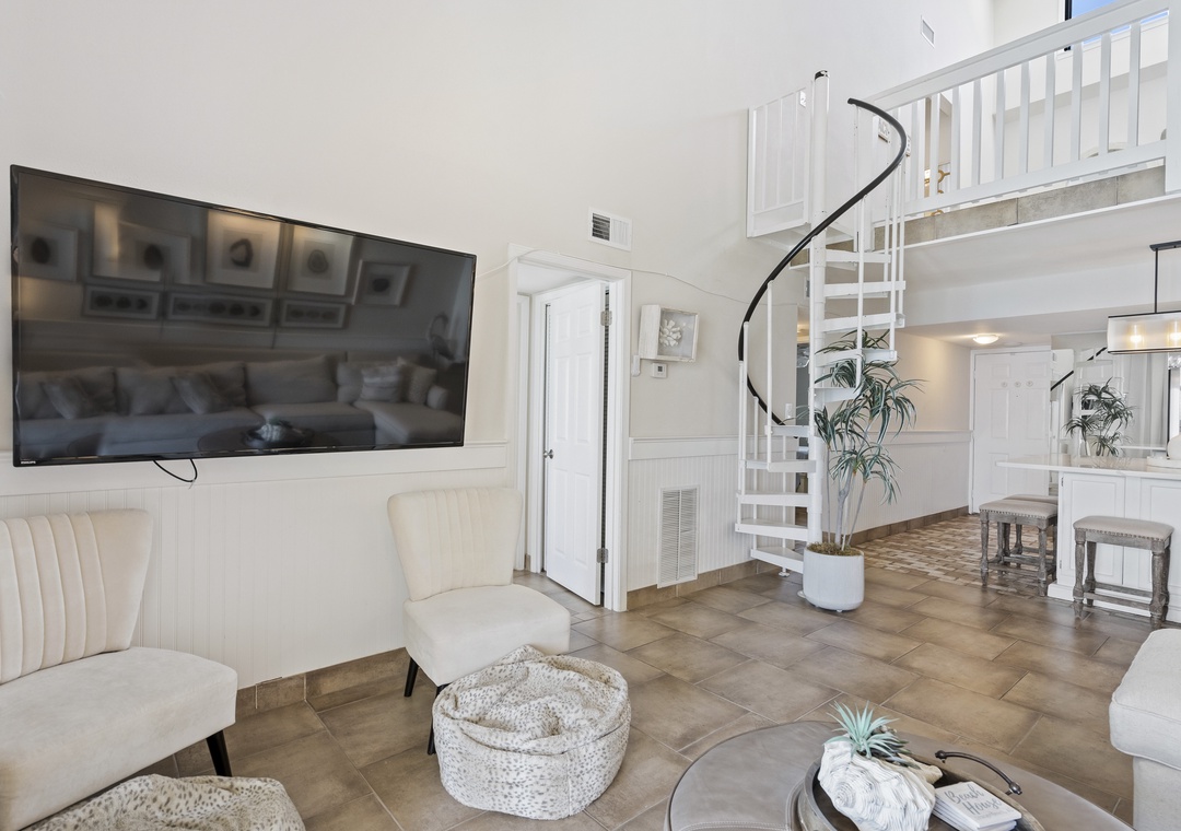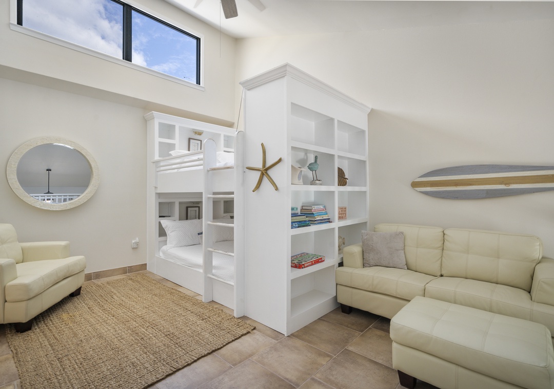 Loft Area: Queen-over-Queen Bunk Bed (each with its own TV + seating area)