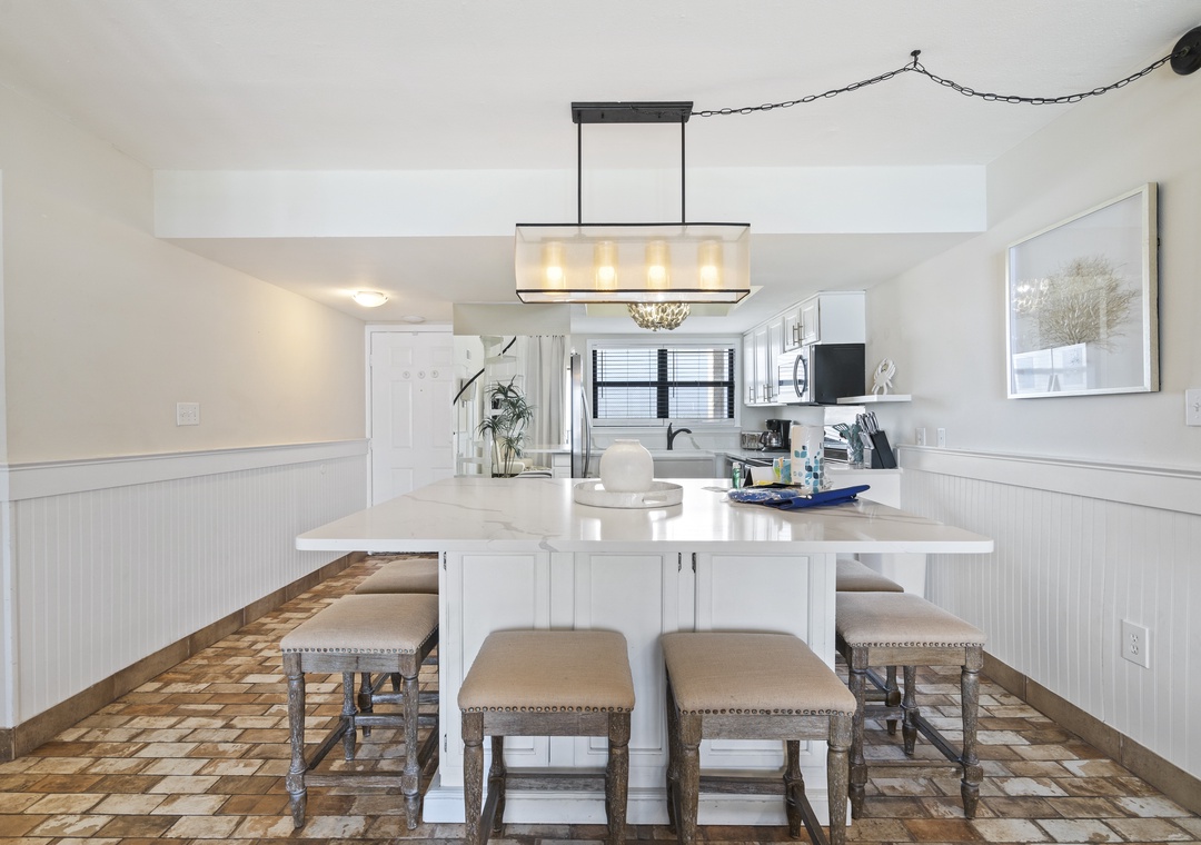 The chef-inspired kitchen features Quartz countertops, stainless steel appliances, and a large center island with seating — making it easy to prepare and enjoy meals together. With plenty of space and modern style, this kitchen is a standout.