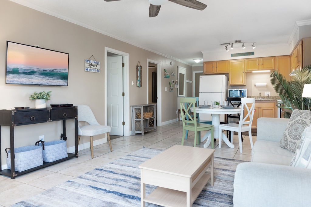 Welcome to Moonlit Tides at Gentle Winds! This cozy two-bedroom condo in the heart of Gulf Shores is the perfect spot for your next family vacation. Step inside an open-concept living space with a well-equipped kitchen. The comfortable living room features a sleeper sofa with a flat-screen TV. Drink your morning coffee out on the private balcony with two Adirondack chairs. Both bedrooms have a queen bed and flat-screen TV. The full-size bathroom has a shower/tub combo.