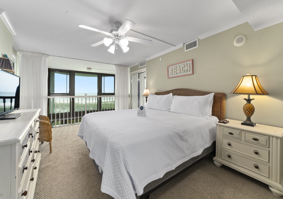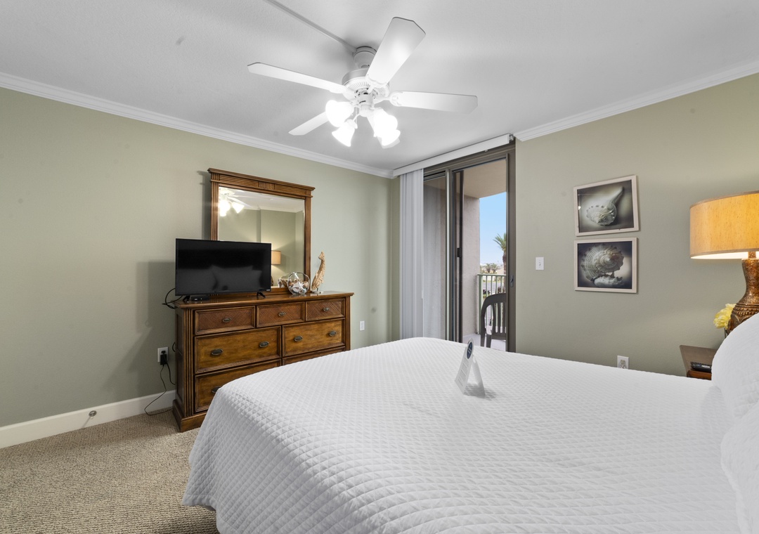 Primary Bedroom: King Bed, Private Bath, Balcony Access