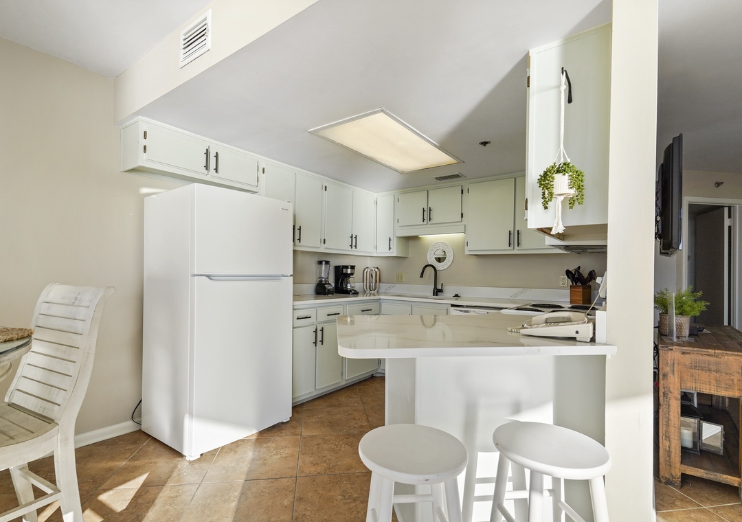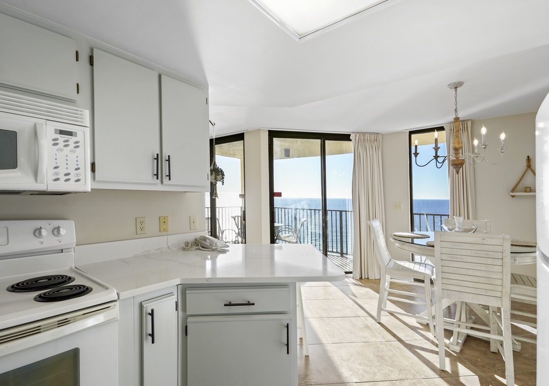 You’ll love the convenience of the in-unit washer and dryer, as well as the fully equipped kitchen, perfect for preparing fresh seafood dinners or quick snacks. Step out onto the private balcony to take in the warm Gulf breeze and sweeping water views.