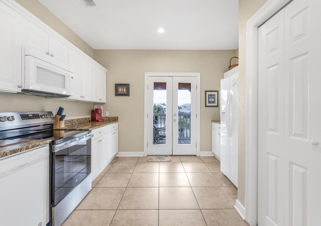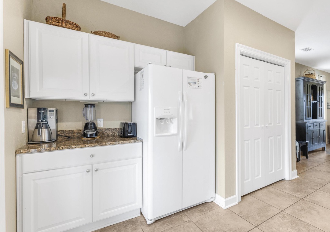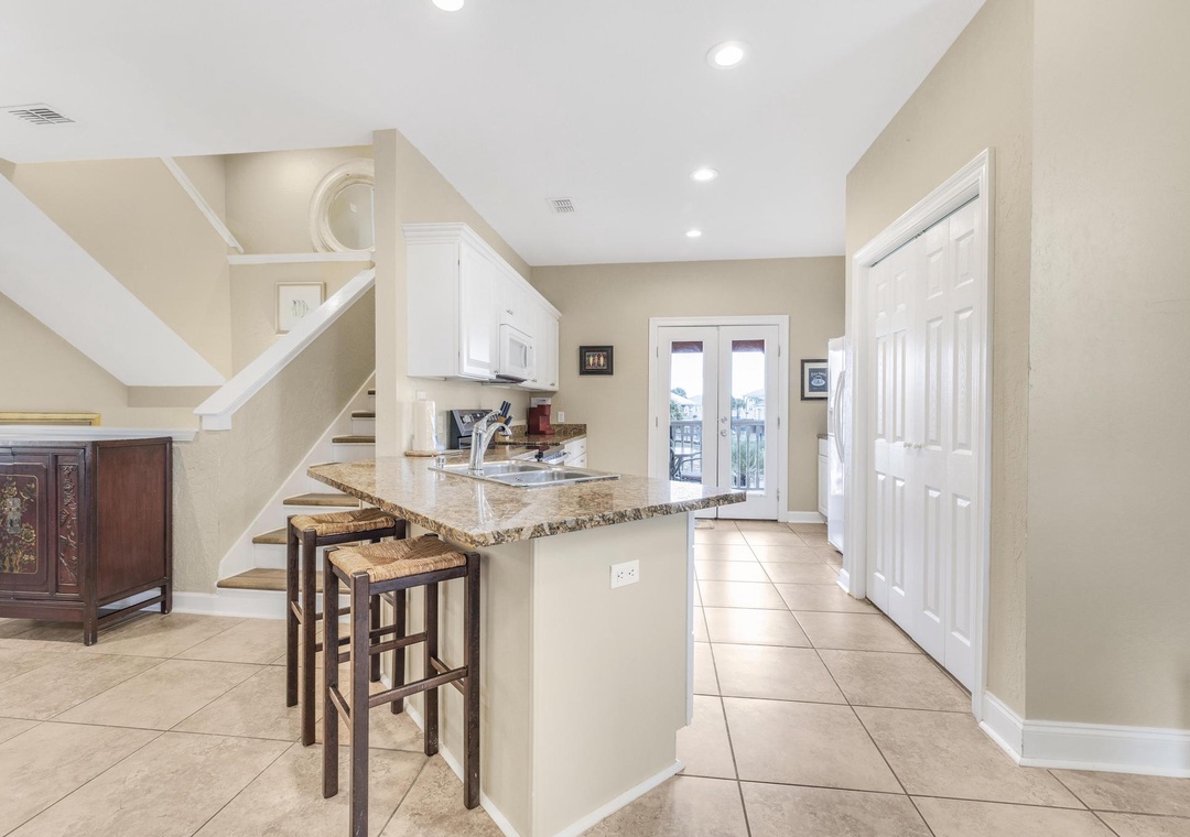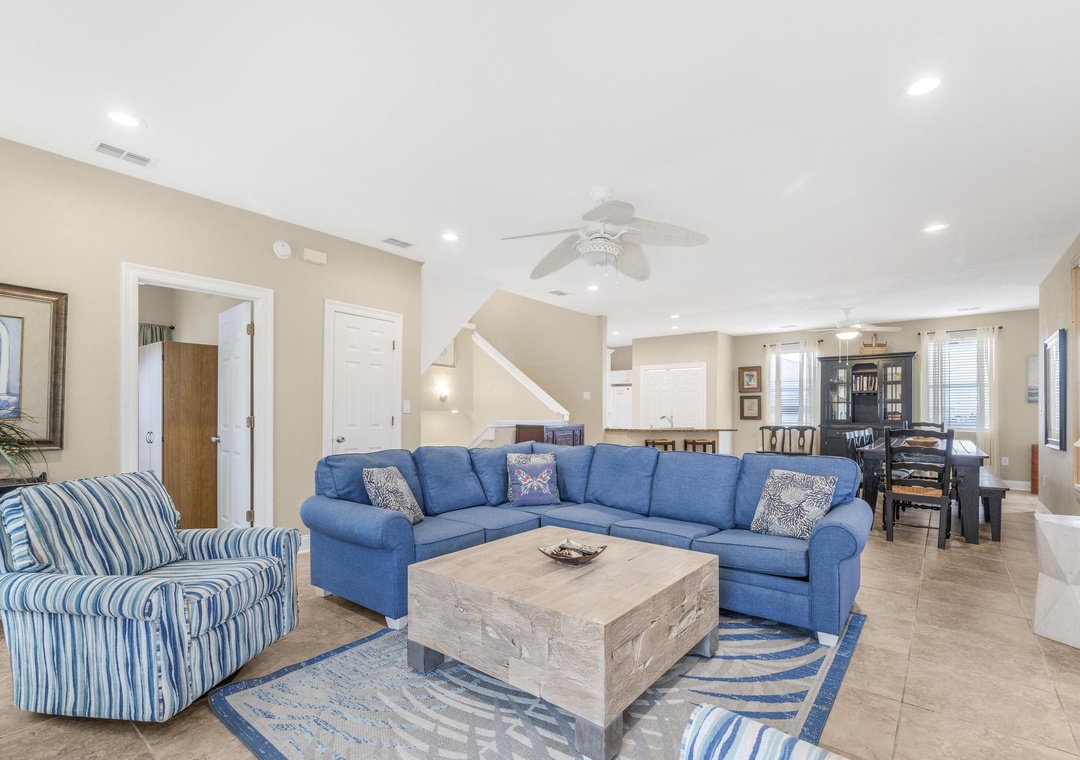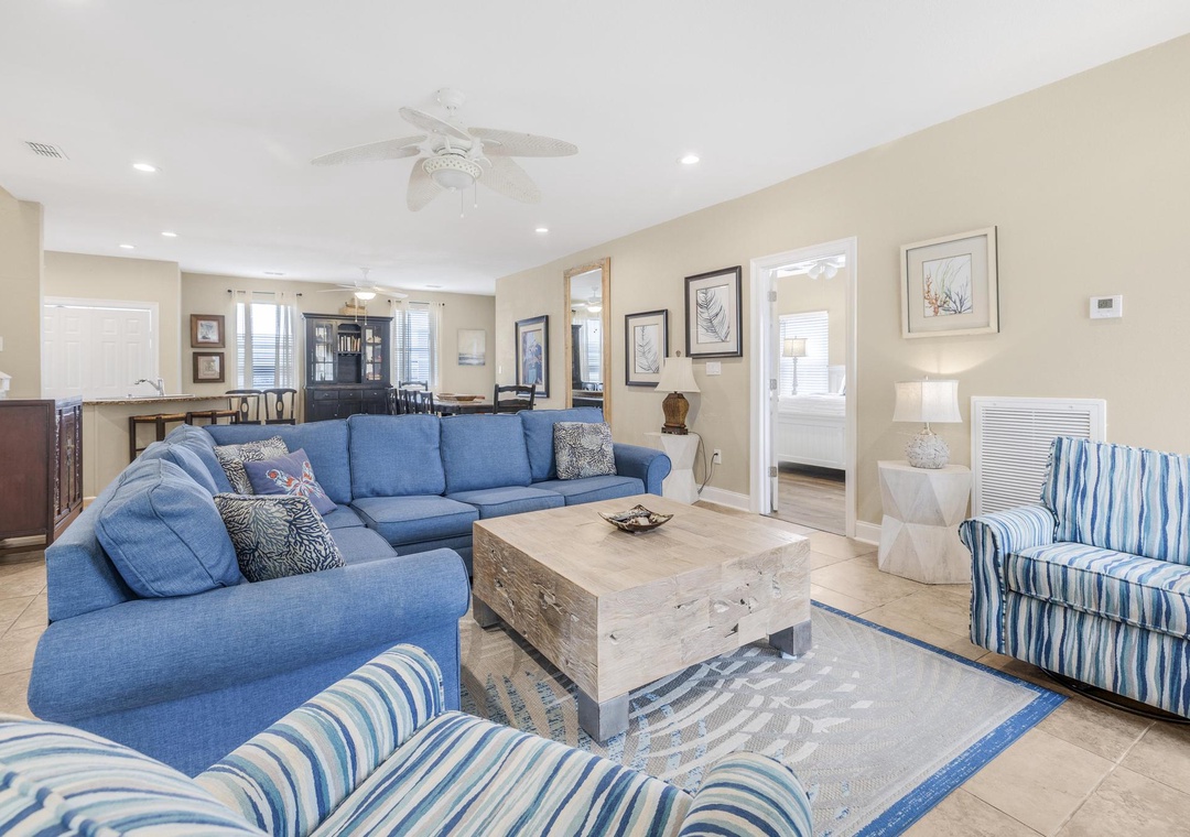 This six-bedroom, four-bathroom home has an open layout, so it feels spacious and inviting. The dining room table offers seating for six with additional seats at the breakfast bar. Also, on the main floor you will find a washer and dryer for your convenience.