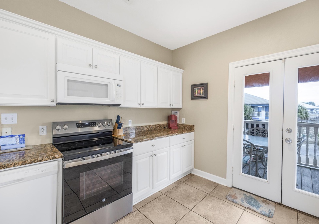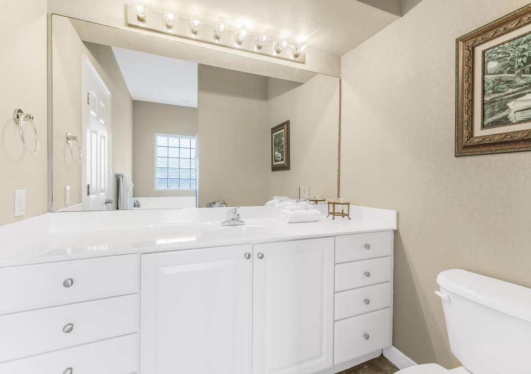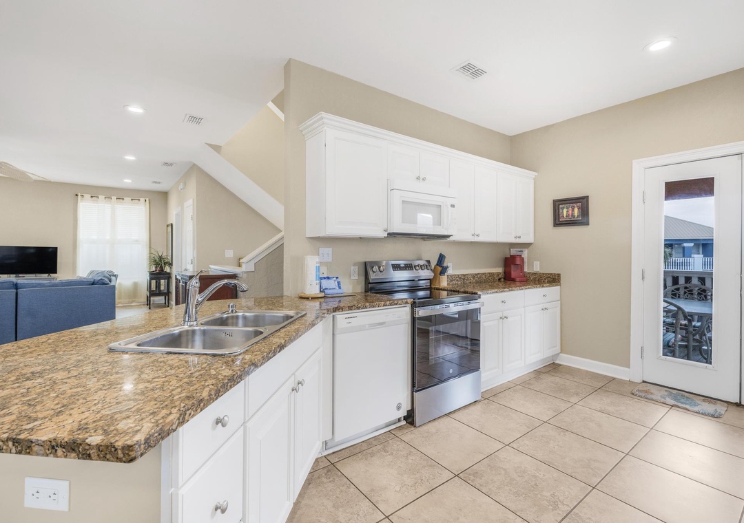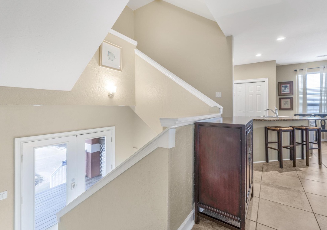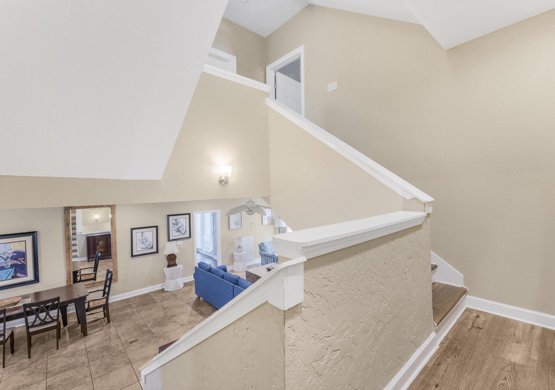 This six-bedroom, four-bathroom home has an open layout, so it feels spacious and inviting. The dining room table offers seating for six with additional seats at the breakfast bar. Also, on the main floor you will find a washer and dryer for your convenience.