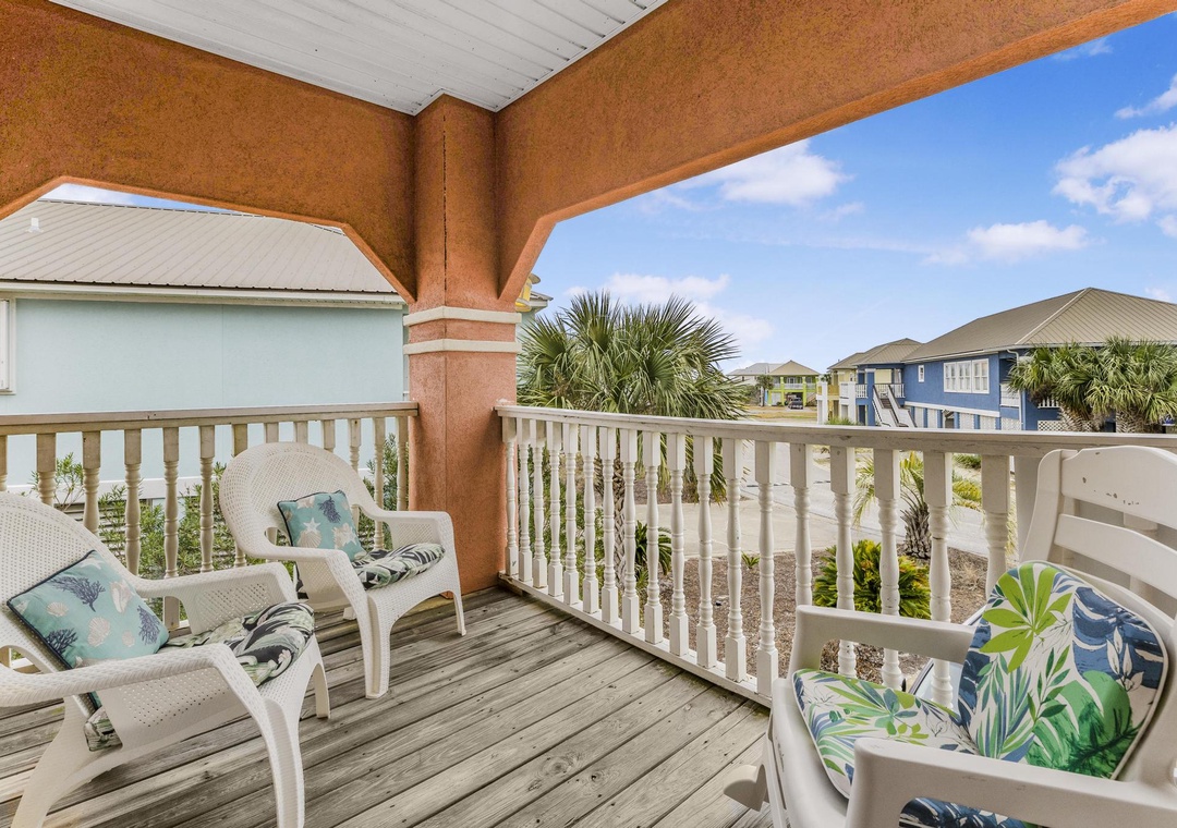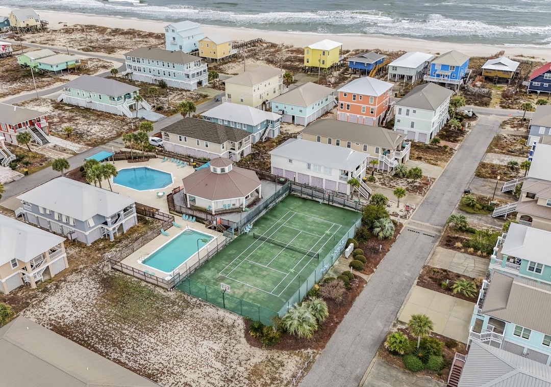 Welcome to Points of View, where your dream beach vacation is waiting for you! This expansive pet-friendly beach house sits near the Gulf of America in beautiful Fort Morgan. You will love sitting on one of the many private balconies and enjoying the breeze and views. Take a dip in one of the two crystal blue community pools, enjoy a game of tennis or take a stroll to the white sands of the Gulf of America for a day on the beach. Walk inside into a vast living area offering plenty of seating with a flat-screen TV. You'll find the kitchen well-equipped with all the appliances you need to cook during your stay, and there is a BBQ grill downstairs.