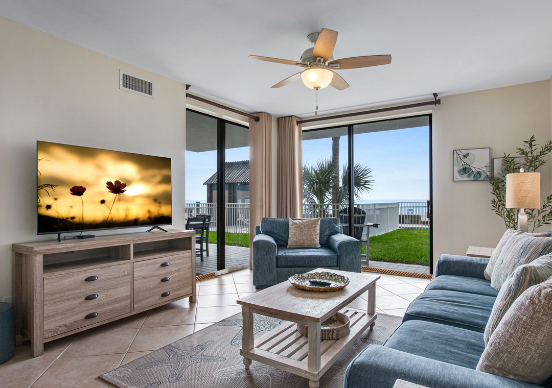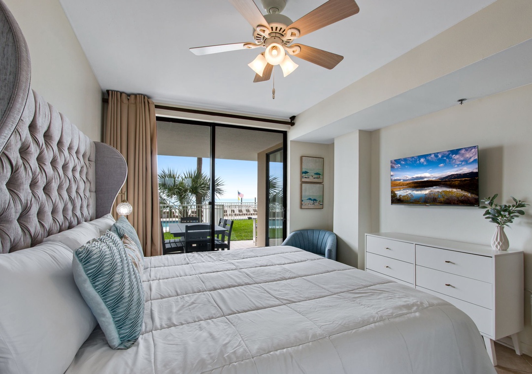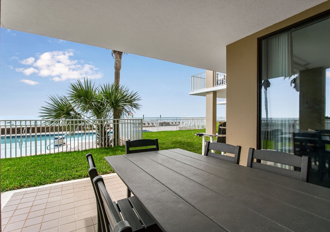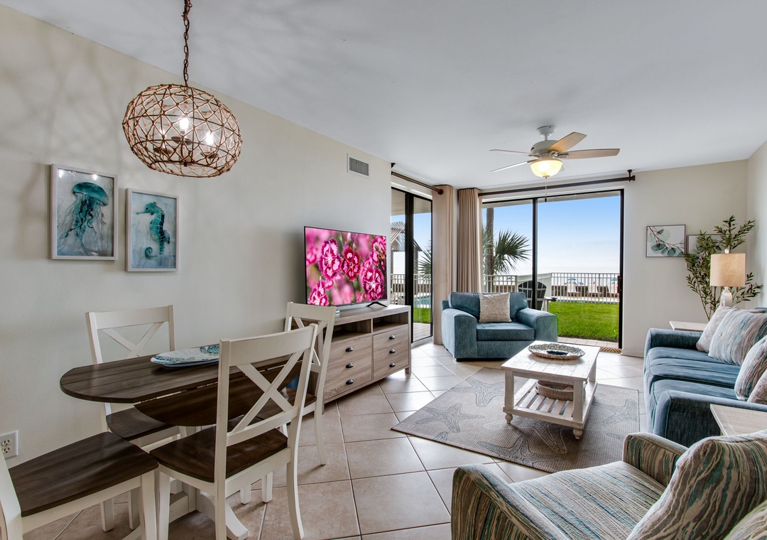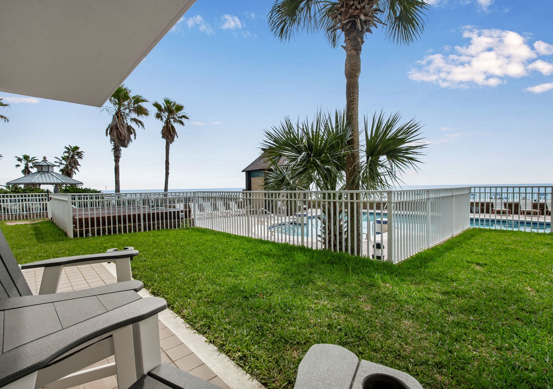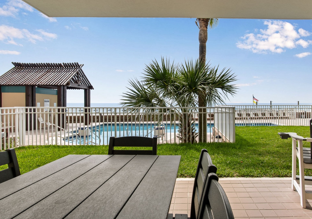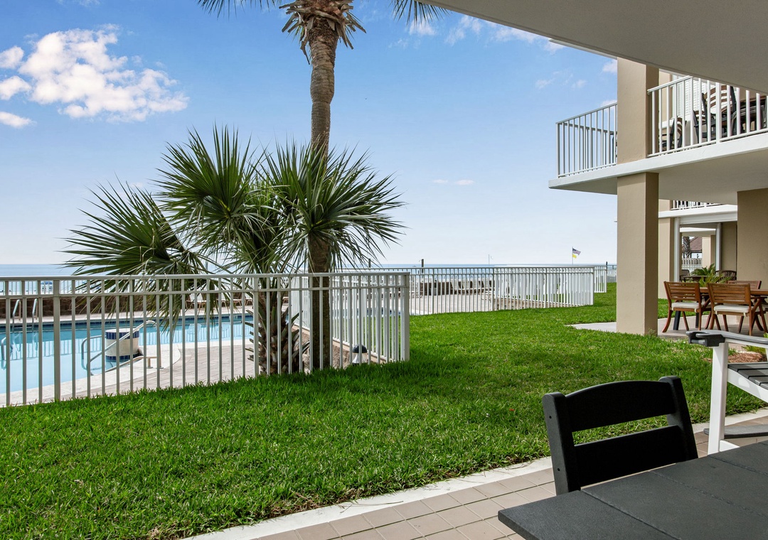 Welcome to Romar Place 102! Step into this relaxing beachfront condo located on the first floor of Romar Place. You will feel right at home with the conveniences this 3-bedroom, 2-bath home has to offer. The convenient first floor is great access to the pool and steps away from the beautiful white sandy beaches. Great for families with little ones, you can sit on the patio and watch them play with no worries. The well-equipped kitchen features stainless steel appliances and is stocked with pots/pans/utensils. The living space has a large flat screen TV to relax after a day on the beach. This unit is equipped with a washer and dryer.