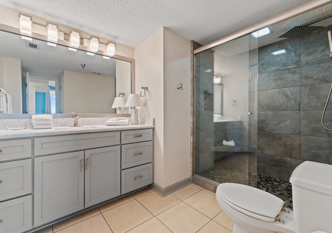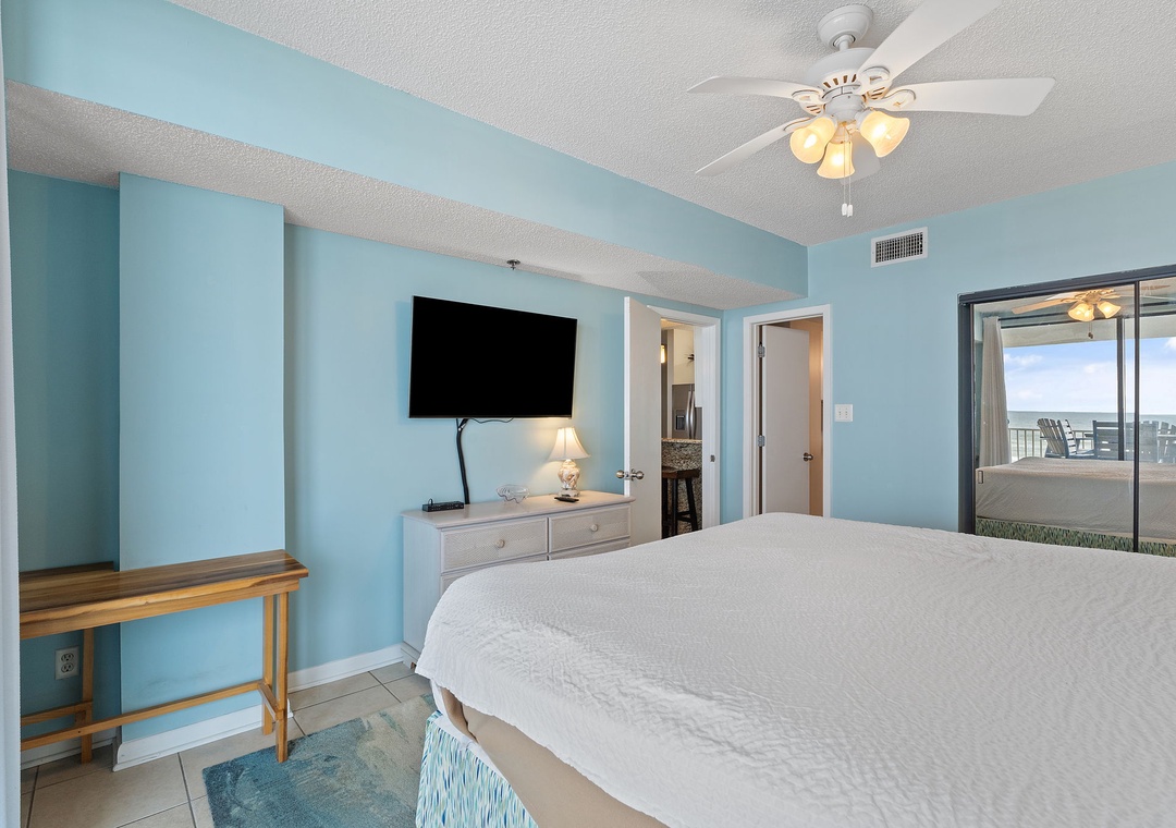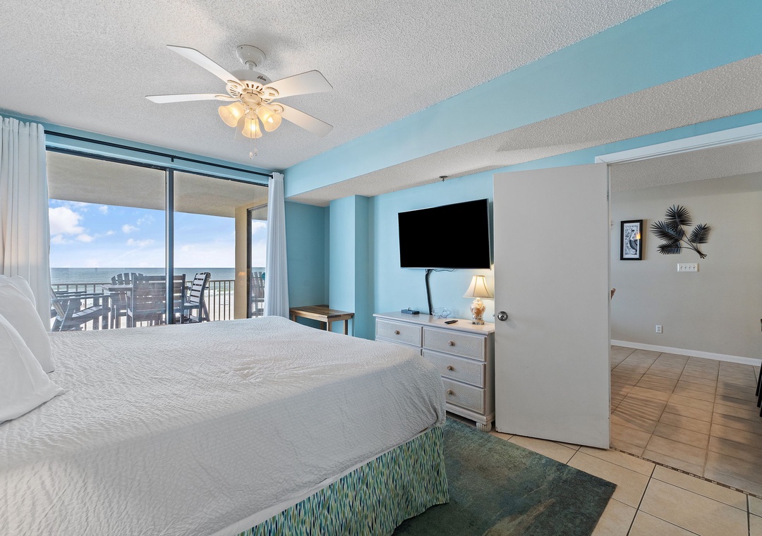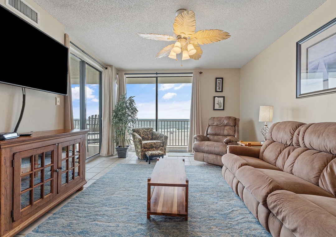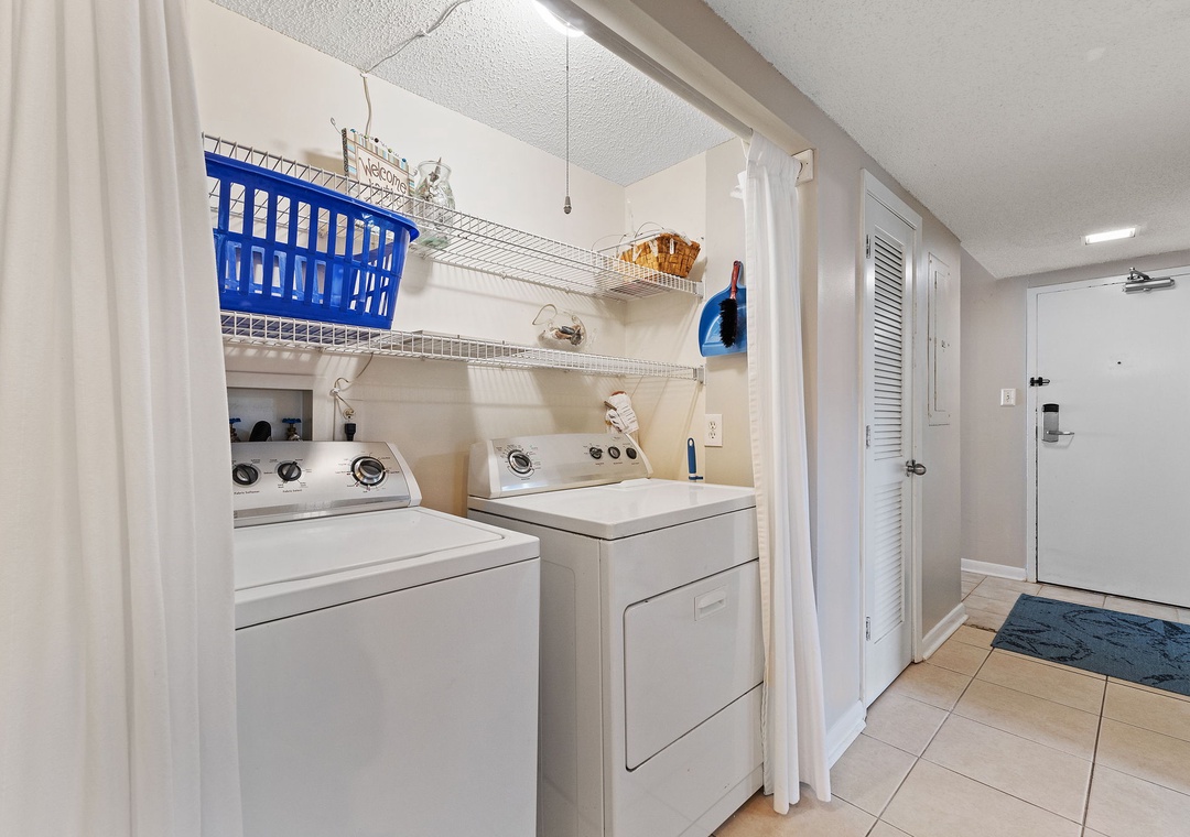 Step inside this open-concept living space in a three-bedroom condo with breathtaking views of the white sugar sands! The well-equipped kitchen features granite countertops and is stocked with pots, pans, and utensils. Gather around the six-person dining table with additional seating for three at the kitchen bar while enjoying a homecooked meal. The comfortable living space has a flat-screen TV for relaxation after a day on the beach, or step outside onto your private balcony. This unit is equipped with a washer and dryer.