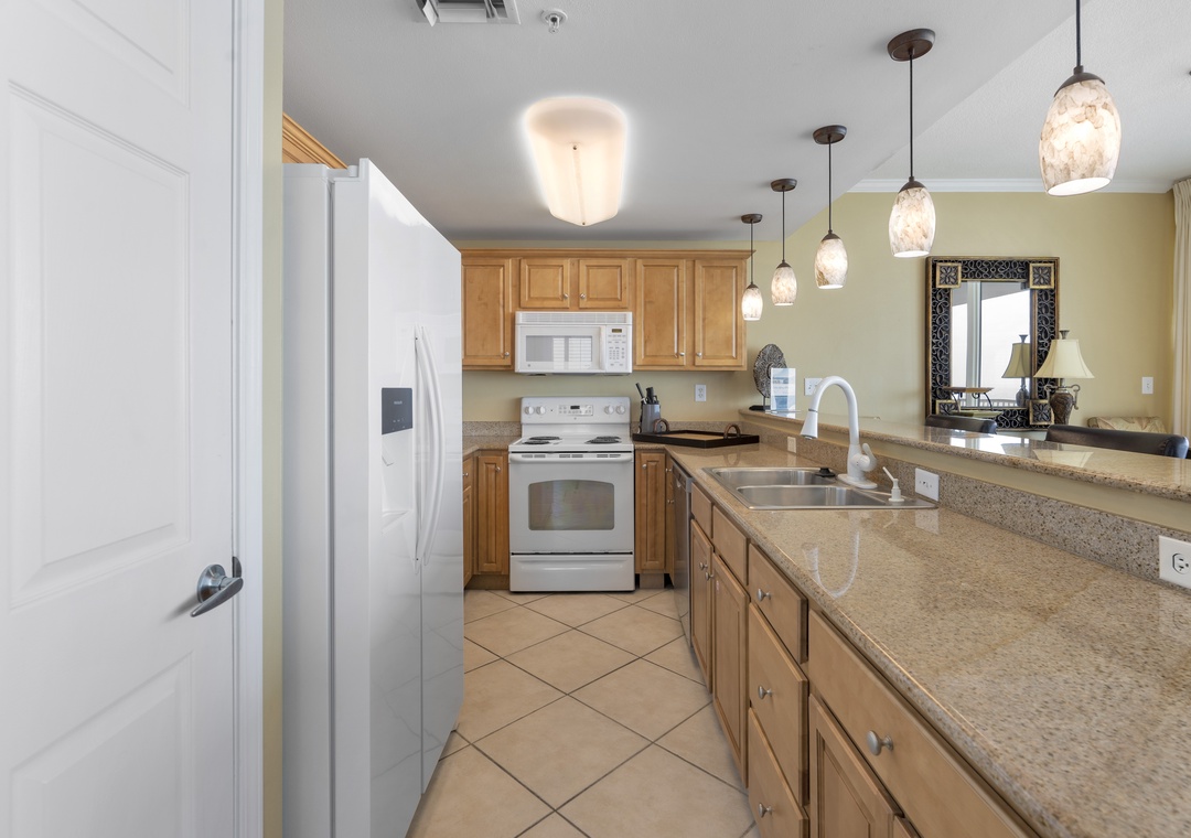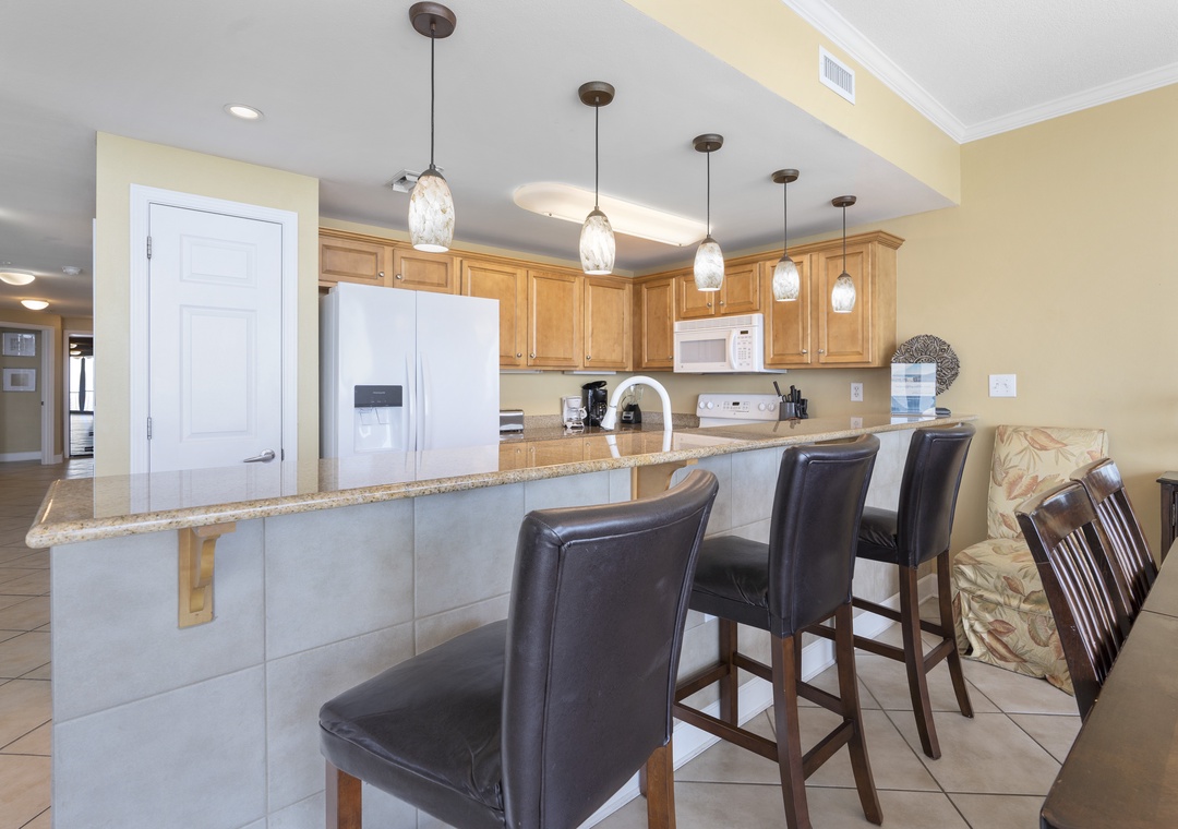The fully equipped kitchen is a standout feature, complete with granite countertops and all the essentials you need to prepare meals during your stay. Free WiFi is also available throughout the unit.
