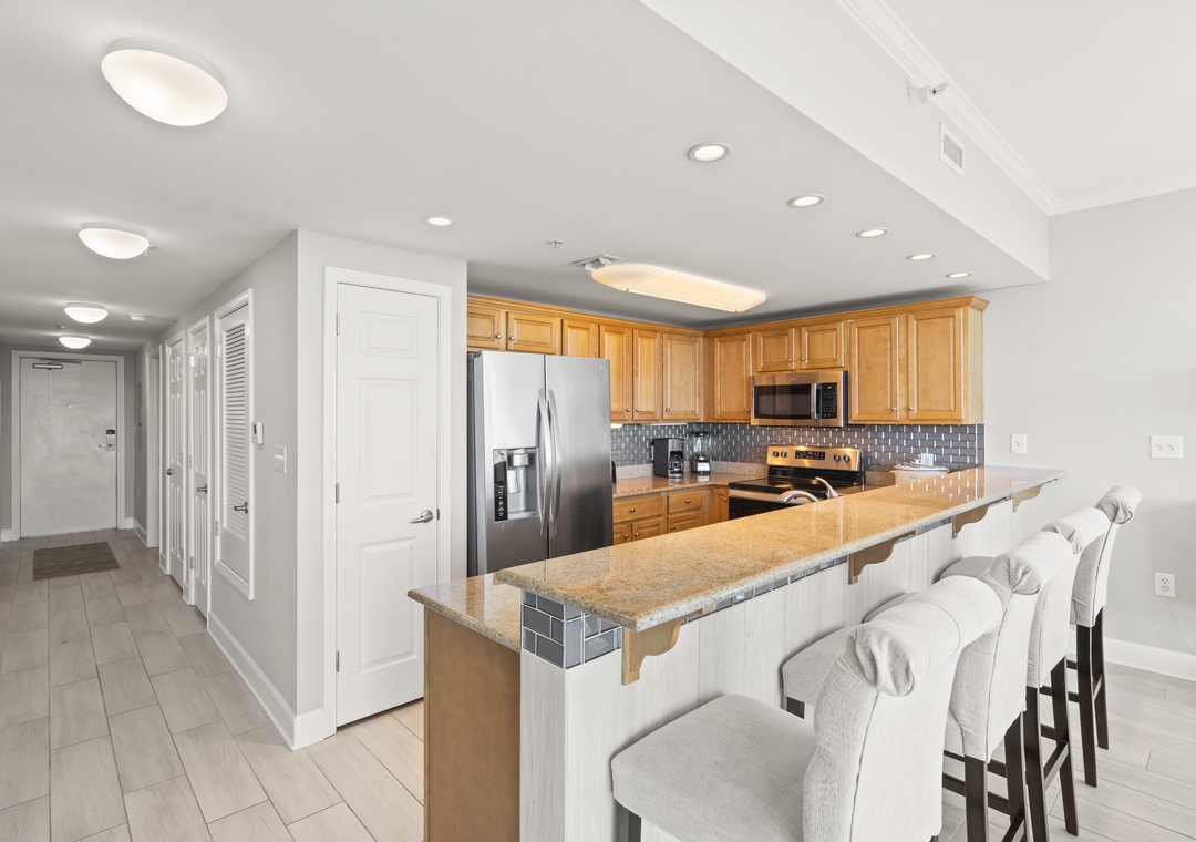 This condo is gorgeous and very spacious. The location is great. It’s not beach from, but the public beach access is next to the property and it’s extremely walkable. The only complaint I could think of is that I wish there were curtains in the bedrooms, as the light from outside is very bright and also, we could have used a dust pan after we swept and we couldn’t find one in the unit.
