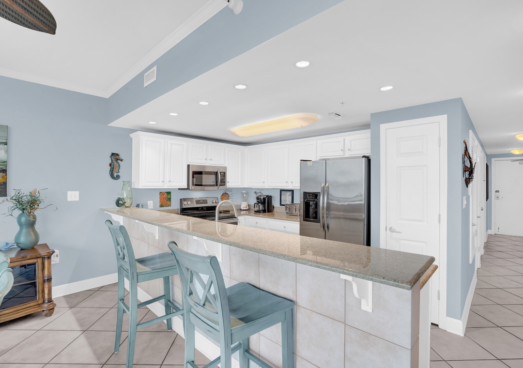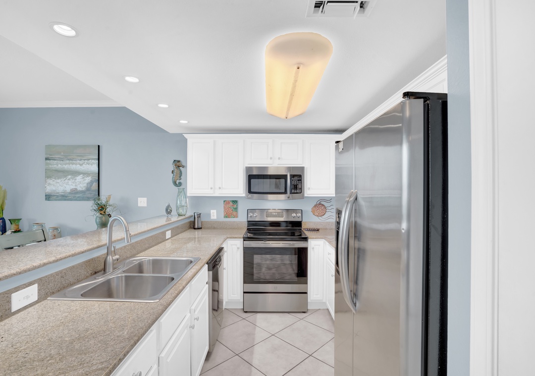 * Fully Equipped Kitchen With Granite Countertops and Stainless Steel Appliances