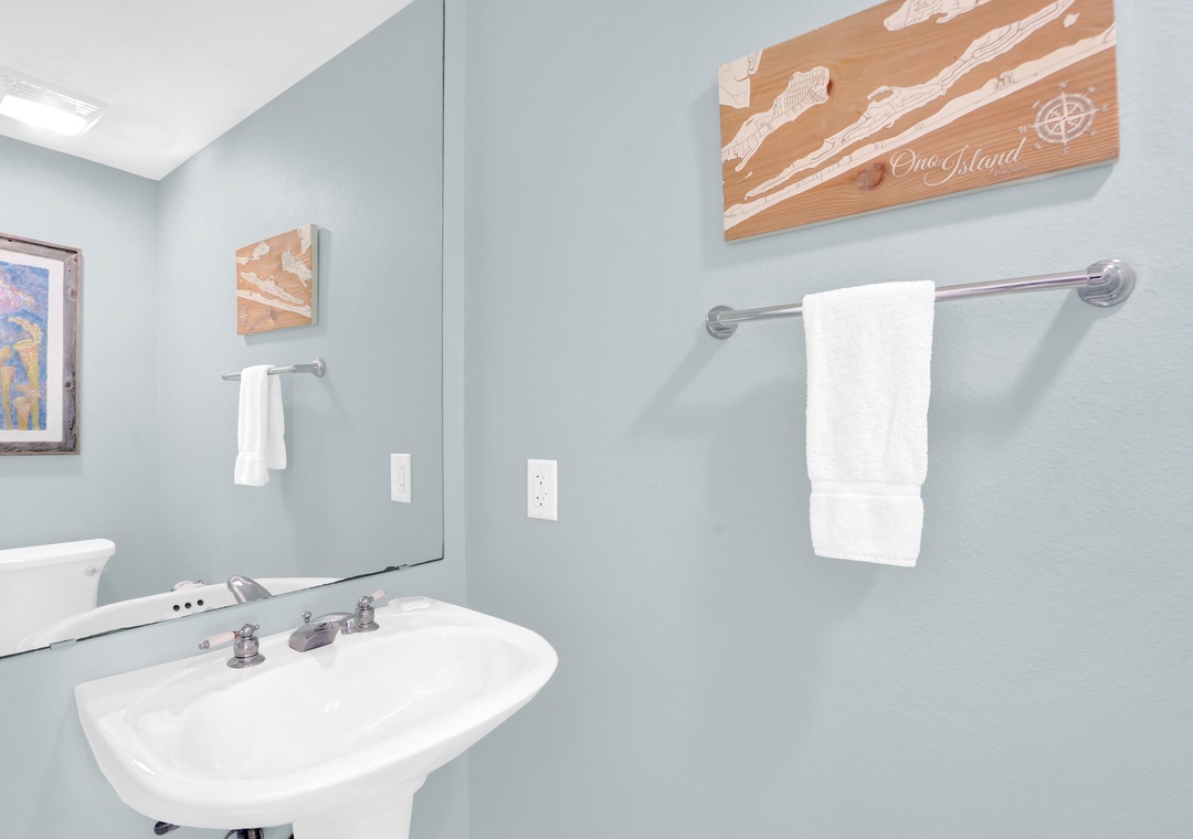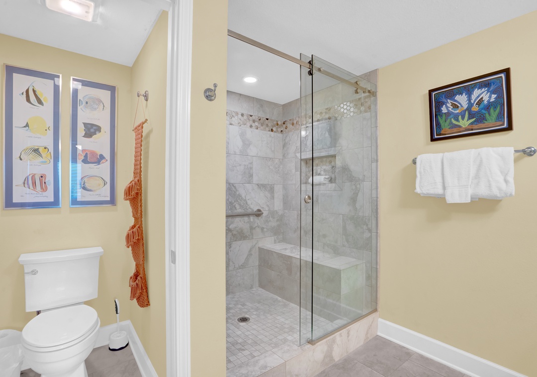 The Primary suite is a relaxing retreat, featuring a luxuriously comfortable King bed and an ensuite bath with a walk-in shower. The second bedroom offers two cozy Double beds and its own private bath, ensuring privacy and comfort for all guests. A convenient half bath is also available in the hallway.