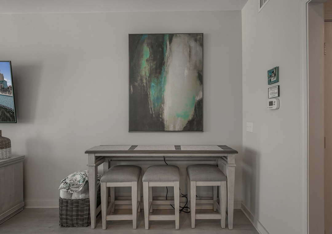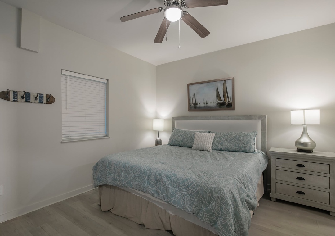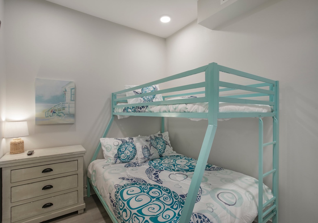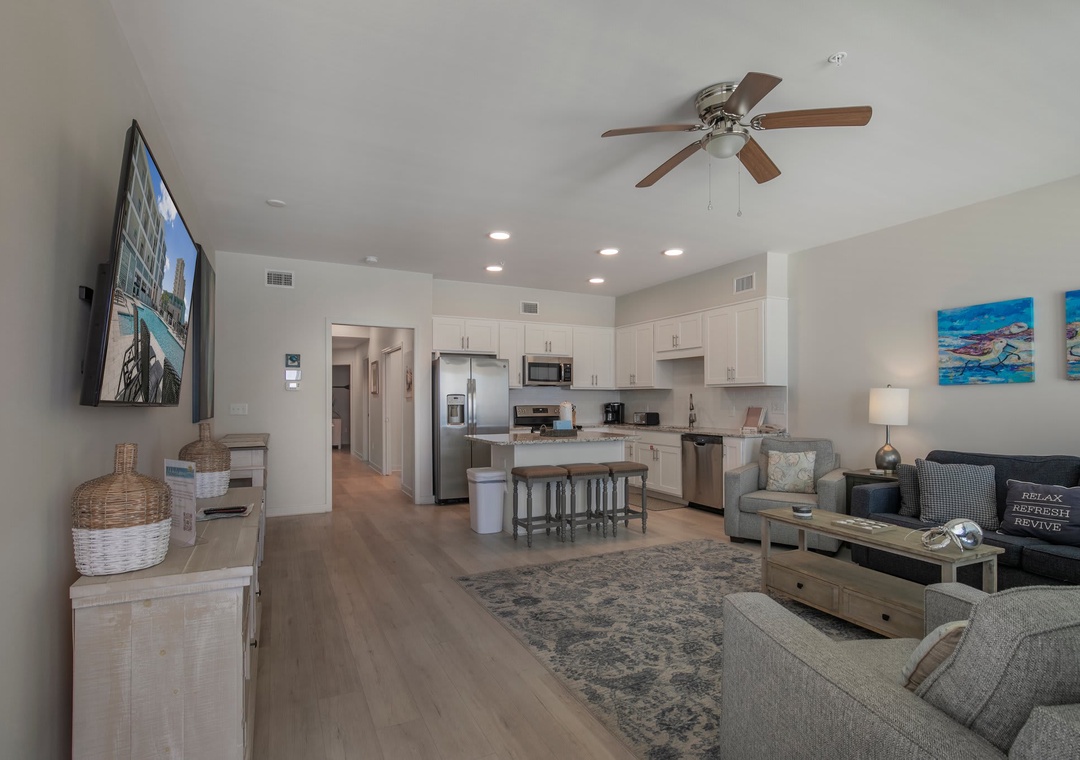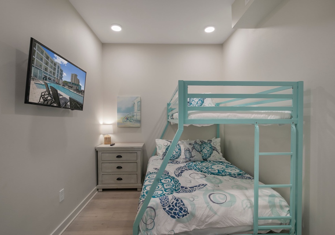 Spacious floor plan with a king in the bedroom. The second room has a bunk bed with a twin over full. There is a sleeper sofa in the living area so the condo comfortably sleeps up to 7 people!!
