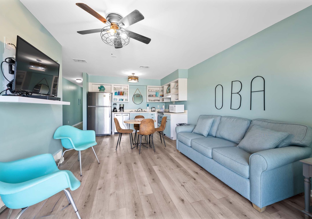 After a day of soaking up the sun, take a dip in the pool or unwind with the ocean breeze from your private balcony. Inside, you'll find a spacious living area with modern furnishings and thoughtful coastal touches. The brand-new sleeper sofa and single chaise offer additional sleeping options, and the smart TV is perfect for a cozy movie night in.