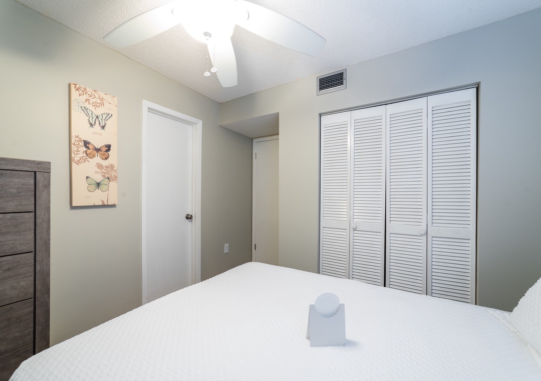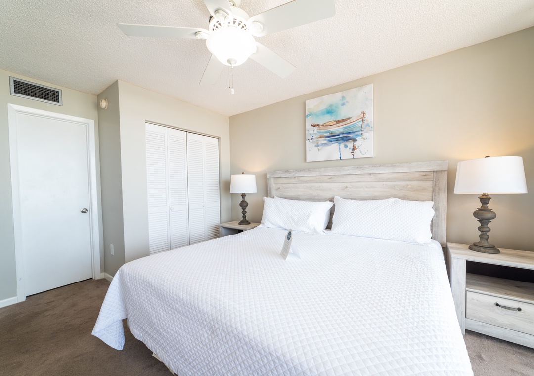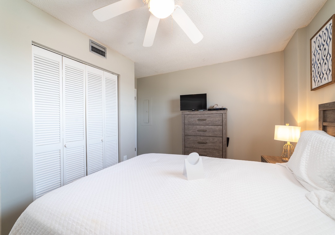 This condo fit our needs for a quick October stay. The bathrooms aren’t huge and some what dated, but the condo is right off the elevator making it easy to unpack or take coolers and chairs down for the beach. and the walk to the beach front (for taking down chairs etc) is very short. It was very clean and well taken care of. AC WORKS WONDERFULLY and the ceiling fans and they also have small personal fans in each bedroom which I love. I think there was even a sound machine in our nightstand but we had packed one. Extra hangers in closets and plenty of drawers to unpack bags in. Beds were comfortable, clean. I would definitely stay here again. And you can walk to the souvenir store next door. The outdoor pool was very clean as well. Great condo at a great price point- Posted: 10/12/2025