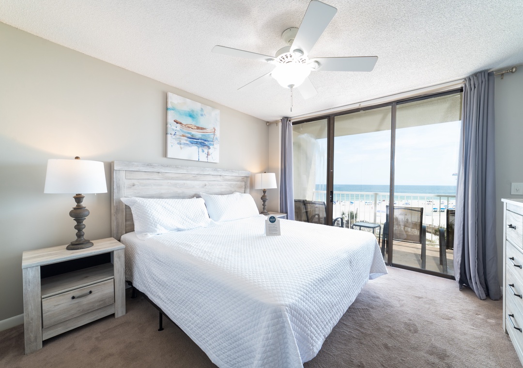 Escape to the Gulf-front beauty of Seaside Beach and Racquet Club 3401, a 3-bedroom, 2-bath condo perched on the 4th floor of Building 3 in scenic Orange Beach. With balcony access from both the living room and the Primary suite, you’ll enjoy stunning views, fresh sea breezes, and the peaceful rhythm of the waves. The Primary bedroom offers a King bed, while the two guest rooms each feature a Queen, plus a convenient Twin roll-away for flexible sleeping arrangements.