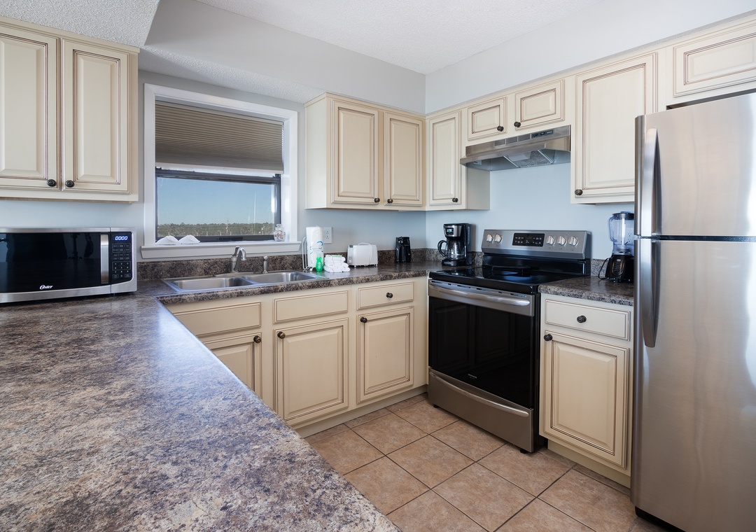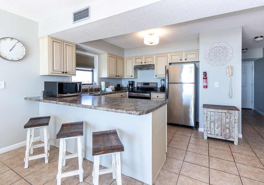 Designed for comfort and ease, this condo includes a fully equipped kitchen with stainless steel appliances, perfect for casual meals or full family dinners. A washer and dryer make beach life simple, and wireless internet access ensures you can stay connected—or share your seaside memories as they happen.