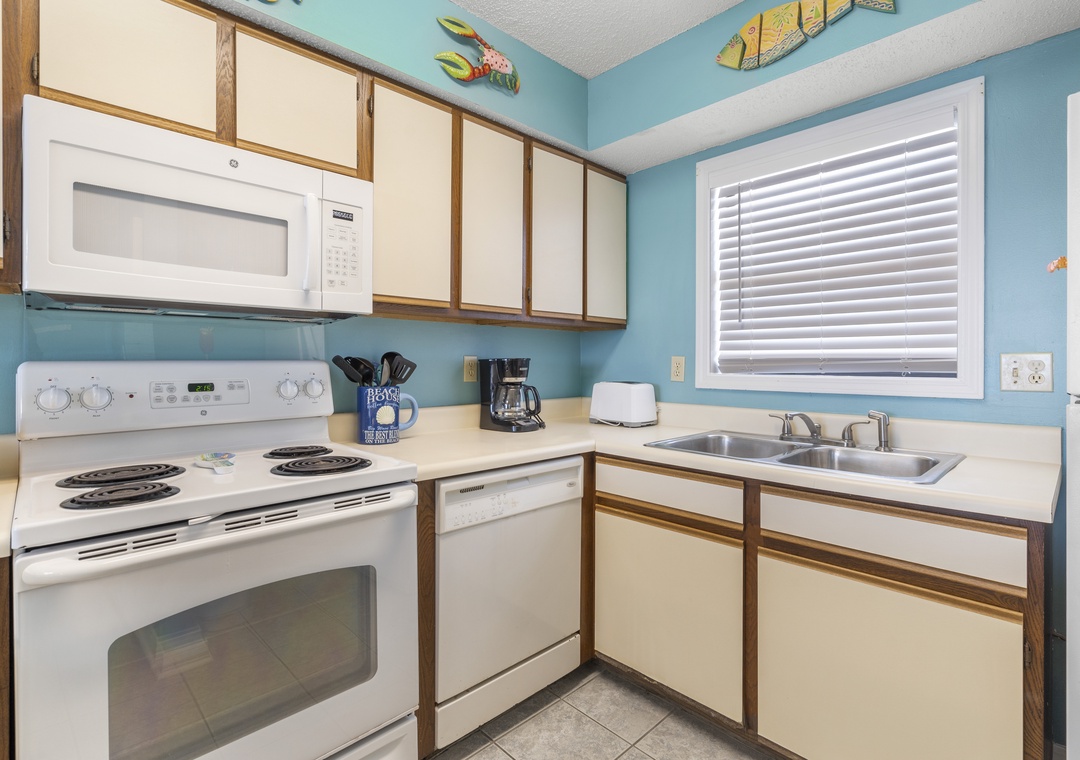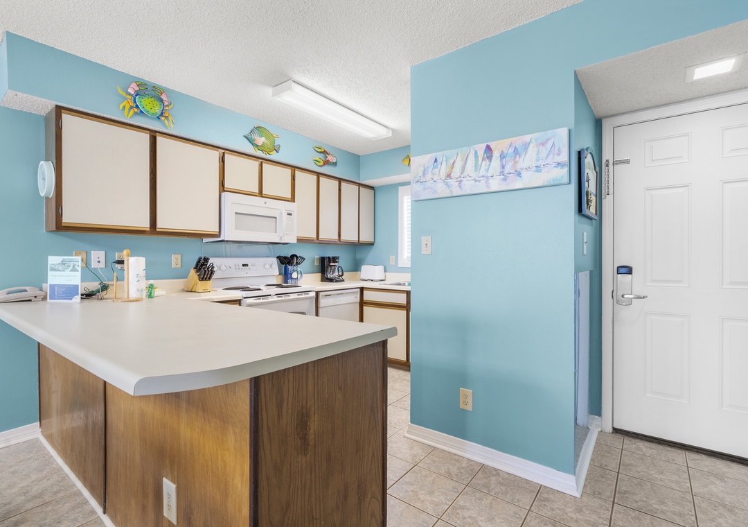 The fully equipped kitchen includes everything you need to prepare meals, from quick breakfasts to full dinners. A washer and dryer in the unit adds convenience, allowing you to keep your vacation wardrobe fresh with ease.