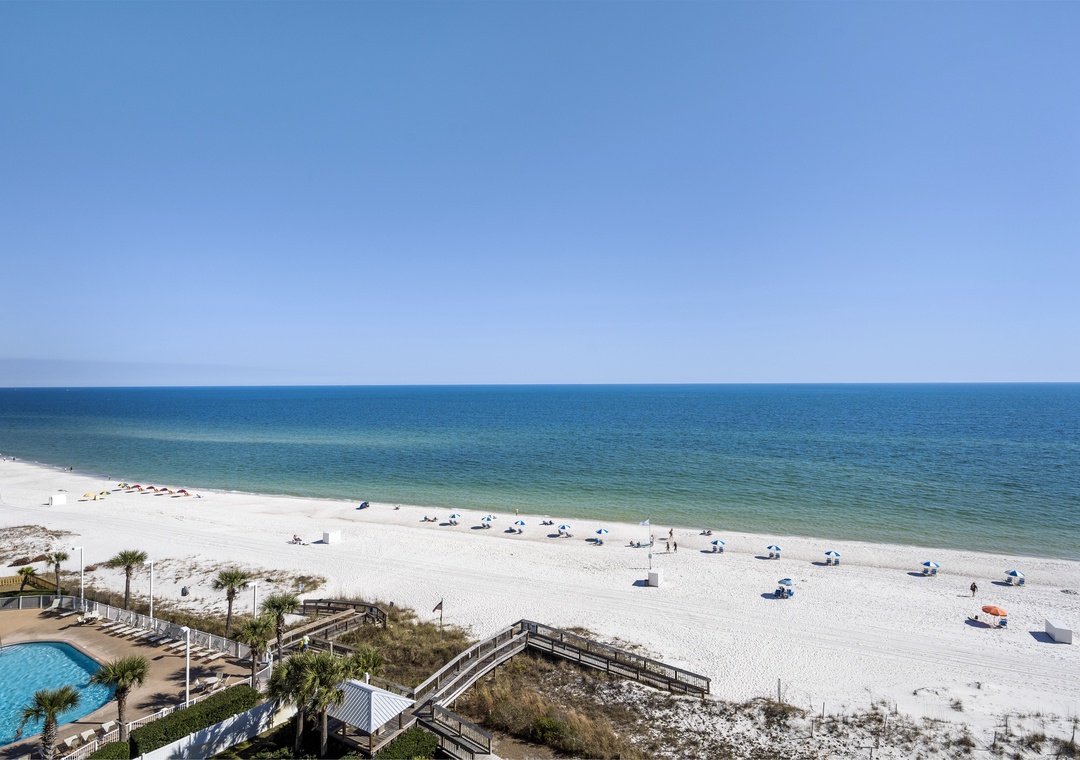 This popular beachfront destination offers direct access to the pristine shores of Orange Beach and a variety of resort-style amenities. Lounge at the outdoor pools, swim year-round in the indoor heated pool, or challenge your group to a game on the tennis or pickleball courts. Stay active in the fitness room or unwind in the sauna and steam room. Enjoy outdoor dining at the grilling area with picnic tables and take advantage of shuffleboard for family fun.