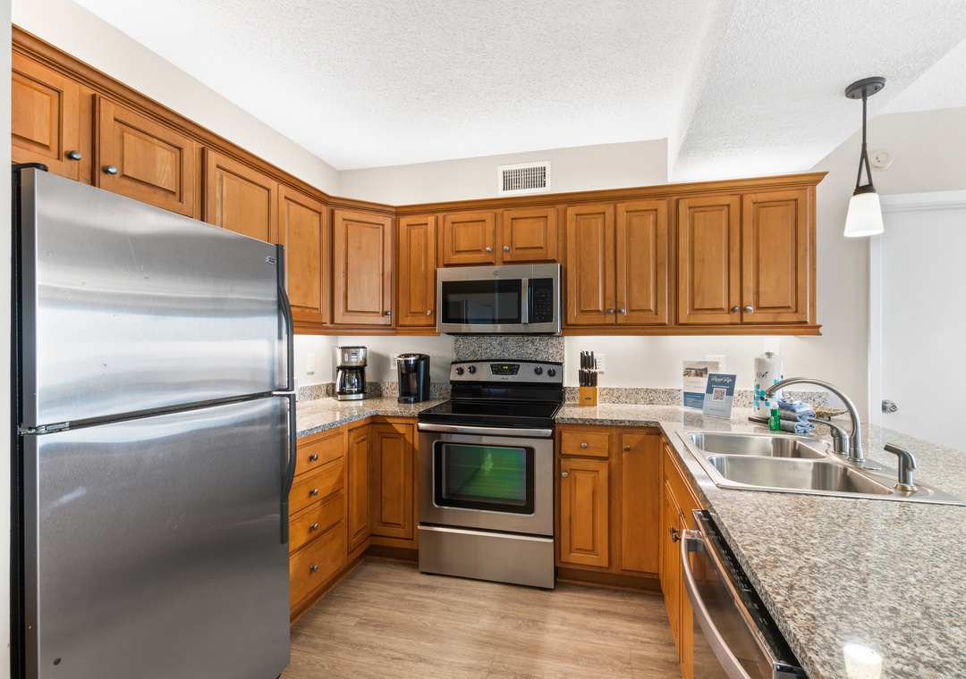 * Fully equipped kitchen with granite countertops & stainless steel appliances