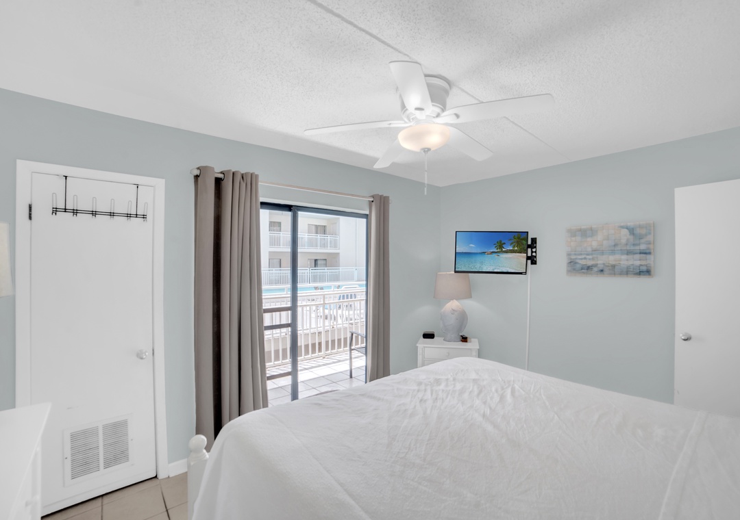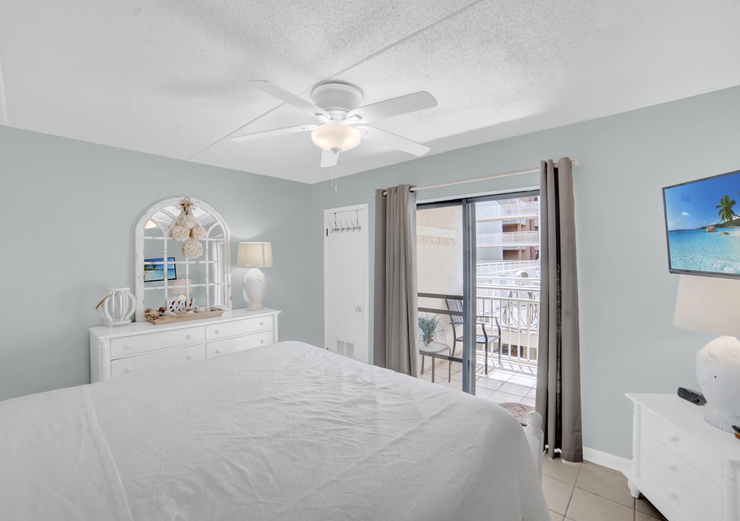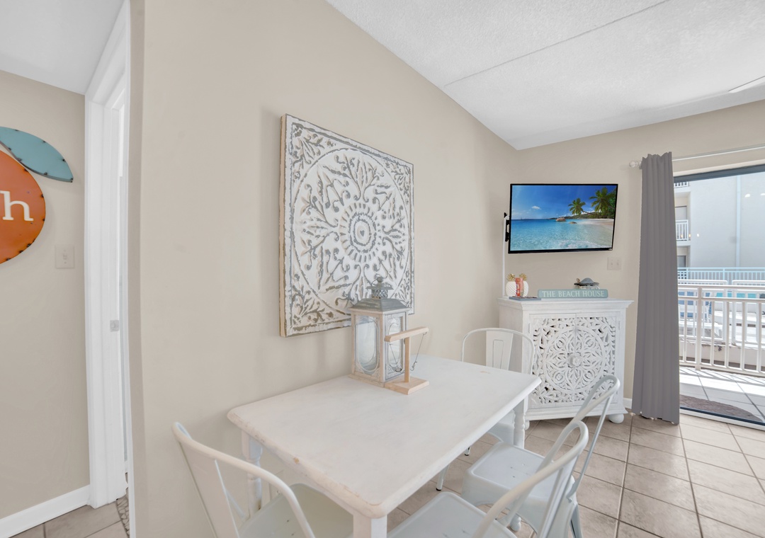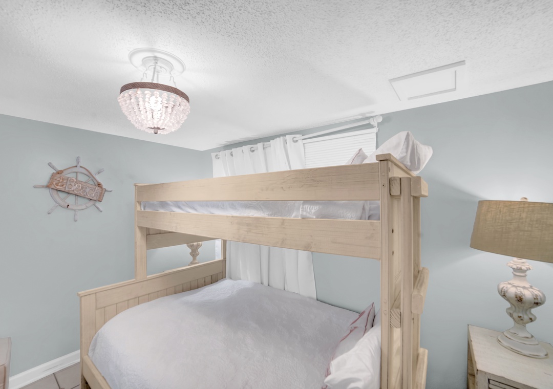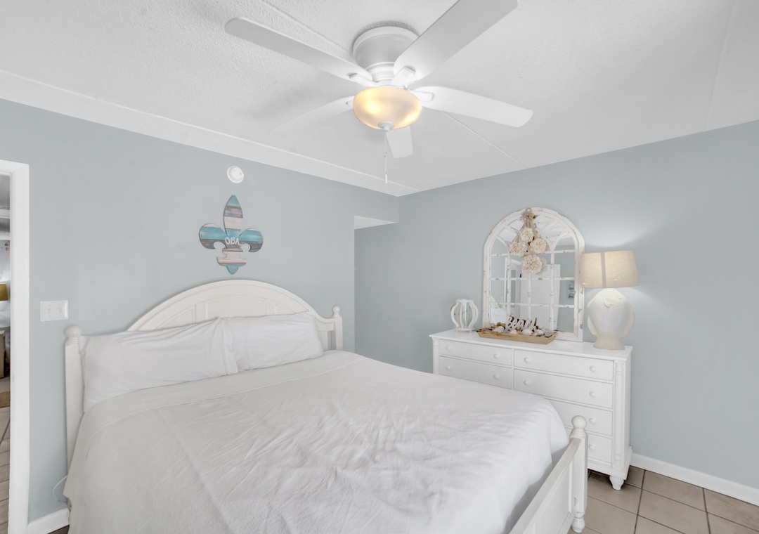 Tastefully updated with granite countertops and tile floors throughout, this condo offers a touch of elegance and plenty of comfort. The Primary bedroom features a King-sized bed, while the guest bedroom is furnished with a Full/Twin bunk bed—perfect for kids or extra guests. The spacious living area includes a Queen sleeper sofa and a flat-screen TV, ideal for relaxing after a day at the beach.