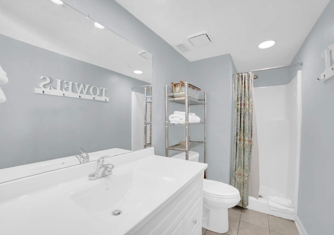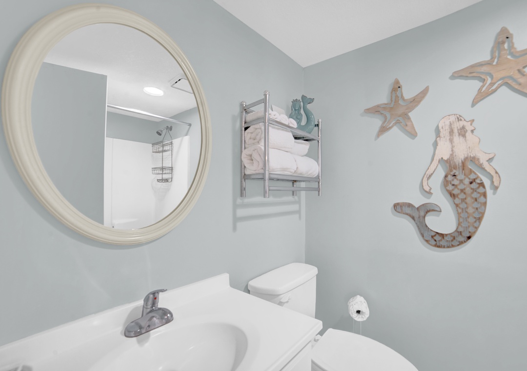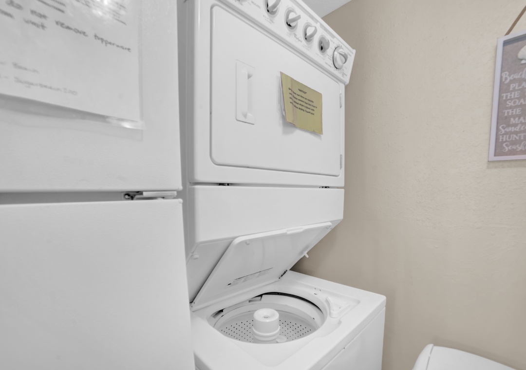 The fully equipped kitchen has everything you need for meal preparation, whether you’re making a quick breakfast before heading to the shore or packing up a beach picnic. A full-sized washer and dryer add even more convenience to your stay.